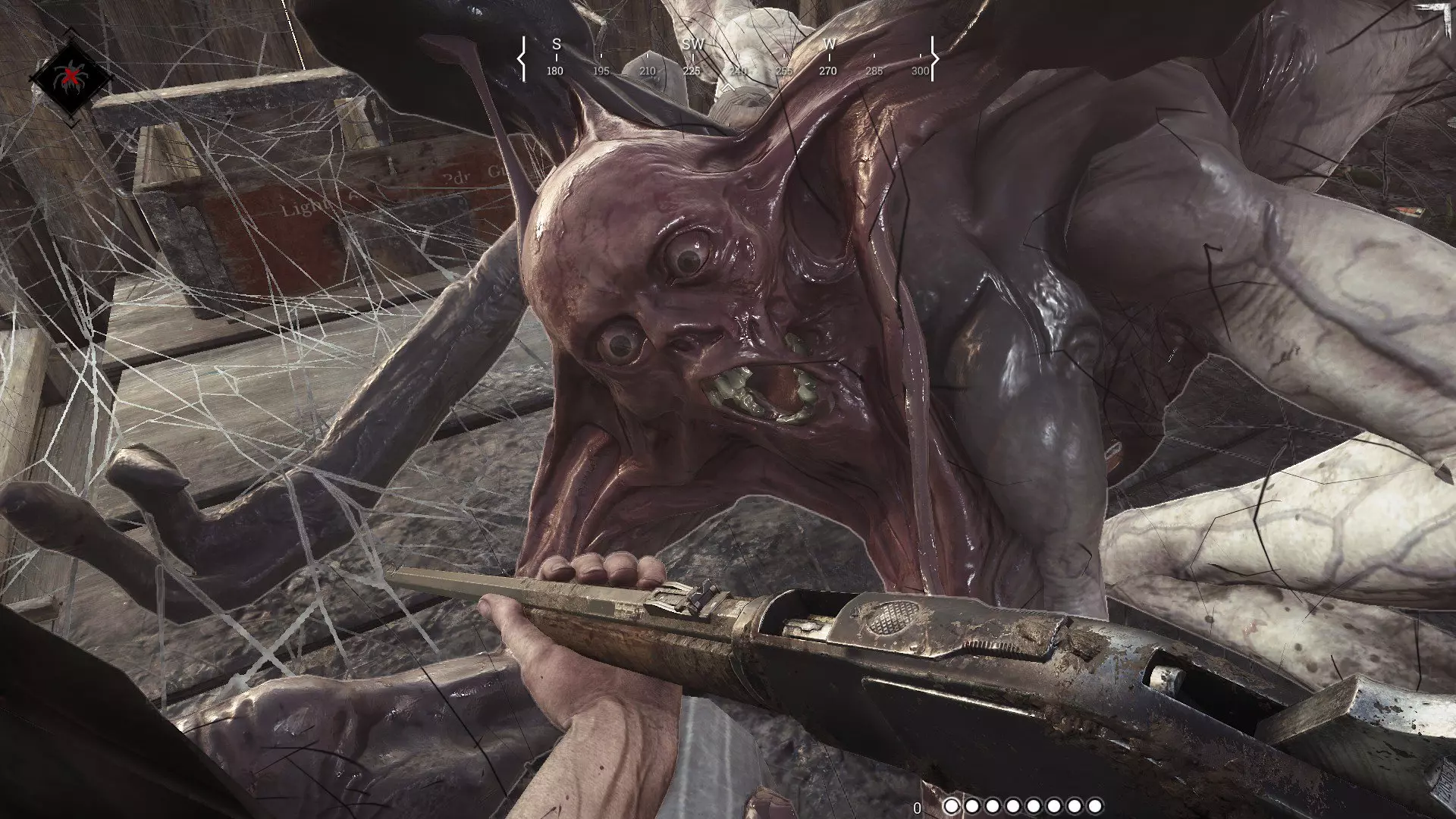 【军需官】(Quartermaster/Интендант) perk解锁组合:大型-中型。 还有解锁4个工具槽的perk和解锁4个消耗品槽的perk。 2.4 技能 每个猎人有15个技能槽。 猎人最多可获得45级点数,但大多数猎人活不到50级。即使活到了,15个槽位也足够了,所以玩家通常会选择较贵的技能。 3. 装备 4. 技能 5.任务合同 在这里我们将介绍任务合同的生成参数,这些参数也决定了比赛本身。可用的任务合同会定期更新,其数量会根据服务器在线人数而变化。在撰写本指南时,欧洲服务器通常有三个可用合同:随机双人合同(所有参数随机)、单人合同(最多10名独行猎人及1个boss)。要追踪另一个 Boss,你需要前往它的领地并在那里收集线索。其他参数均为随机生成,还有特定的双人契约,该契约会定期更换。你可以在双人契约中选择单人游玩,但对手显然会占据优势。不过,仍有不少玩家喜欢单人对抗双人队伍。 5.1 氛围 很难简单地将此参数称为昼夜或天气,因为它同时包含了这两种元素。目前游戏中的契约有日间、夜间和雾天模式。本月将新增一个模式,很可能是雨天模式,该模式会降低能见度并增加听觉导航的难度。 5.2 Boss 目前游戏中有两个Boss:屠夫和蜘蛛。两者都能对玩家造成高额伤害,但它们的相似之处仅此而已。 屠夫相对容易击杀,因为它的受击判定面积较大。不过它可能会非常频繁地发起攻击,而且其攻击带有火焰效果。因此,人们通常会在建筑物外部将其击杀。具体做法是:快速冲过去向它射击,然后迅速撤离,接着继续射击,直到它退回自己巢穴的深处。你也知道,如果有人在你这么做的时候趁机偷袭,你就会成为一个非常容易被攻击的目标。首先要说明的是,屠夫不会受到火焰伤害(你们可能觉得这是理所当然的,毕竟他本身就是喷射火焰的。但我曾见过大名鼎鼎的麦迪逊专心致志地用煤油灯攻击屠夫)。 而蜘蛛则是个十足的麻烦。对付它的一大优势在于,你可以从容地进入它的巢穴,用捕兽夹封锁入口,然后再开始着手处理这个生物。与蜘蛛战斗的主要问题在于很难击中它。它总是在楼层间、各个阴暗角落来回乱窜,你和队友不得不像两个傻子一样在整栋楼里追着它打。这还不算完,这家伙还会咬人,时不时还会精准地喷出毒雾。如果你陷入这种情况,生命值会持续减少,直到你离开这片烟雾(或者烟雾自行消散,但消散速度非常慢,足够让你在里面死亡5次)。生命值减少的速度较慢,但中毒效果依然存在。在黑暗的建筑里,再加上中毒状态,想要看清蜘蛛或悄悄靠近的敌方猎人会更加困难。此外,蜘蛛可能会扑向你,将你击倒并造成可观的伤害。当你看到它准备跳跃时(发出嘶嘶声并抬起前腿),不要试图逃跑,反而要攻击它。这很可能会打断它的跳跃,受创的蜘蛛怪物就会逃到另一个角落。 5.3 首领数量 首领可能有一个或两个。如果是两个,地图会被分成两部分。在这种情况下,首领的奖励既可以是相同的(100和100),也可以是不同的(例如125和75)。如果地图在首领之间平均分配,那么每个首领的奖励将为100。而如果地图在首领之间分配不均,那么其中一个首领的奖励将被设定为125,另一个则为75。在其中一个首领的领地收集线索时,你将只会“调查”该首领的位置。