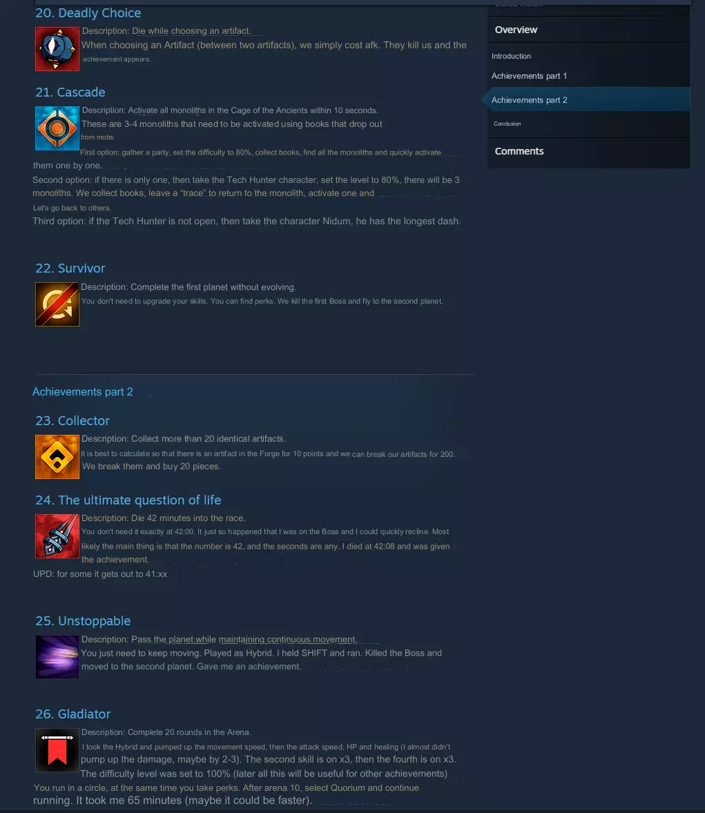 本指南中,我详细描述了所有成就及其获取方法。祝您游戏愉快! 简介 为了方便导航,我将所有成就按难度排序,从最简单的(木底背景)到最困难的(分别为银底和金底背景)…