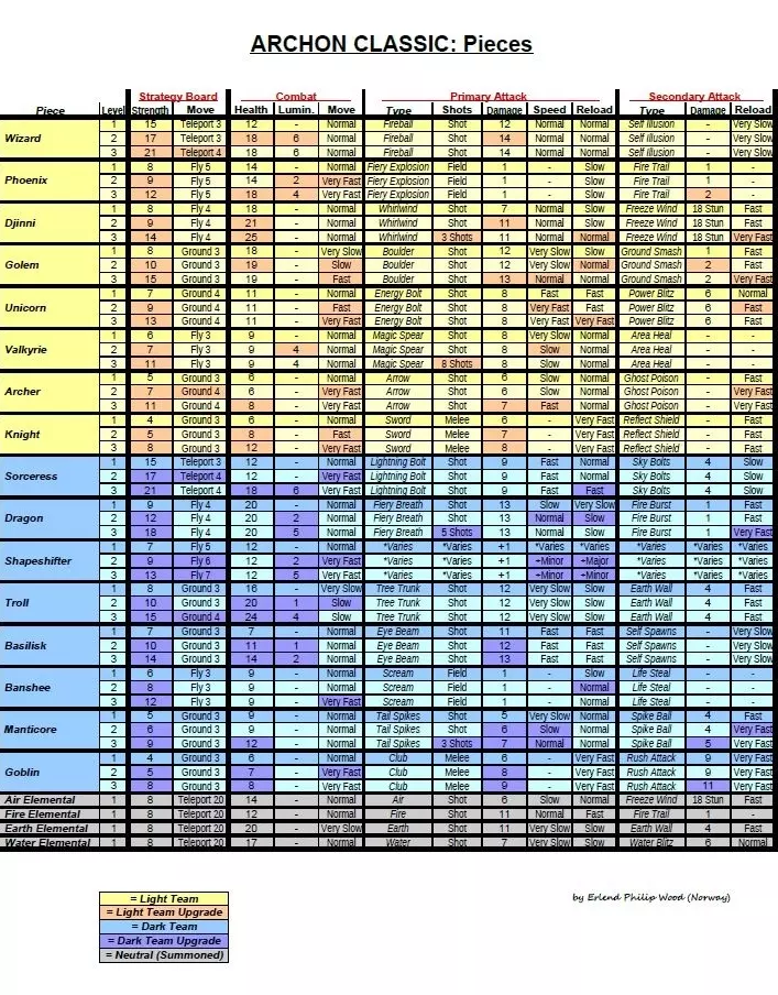 《Archon Classic》所有棋子强弱对比表 棋子列表