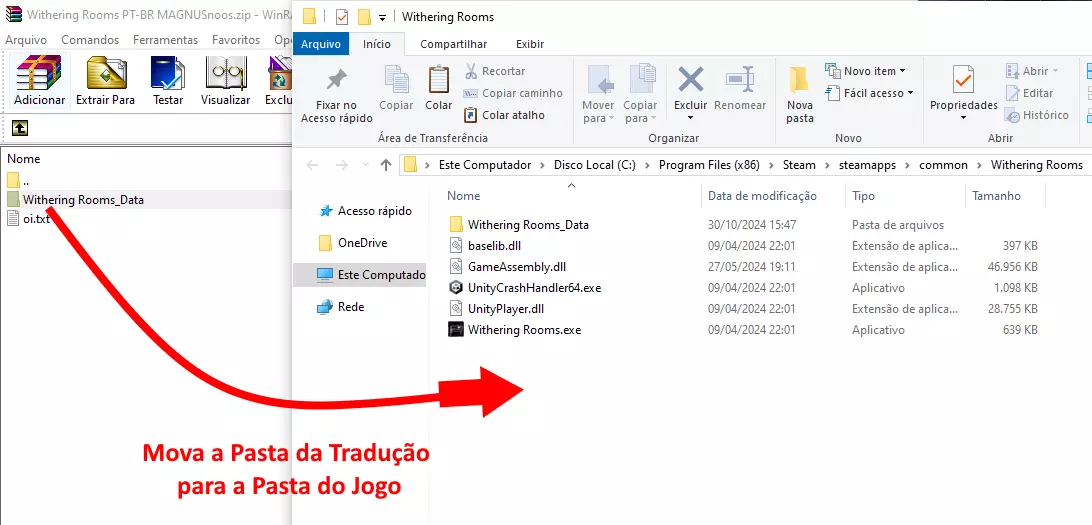 接下来,将翻译文件夹【Withering Rooms_Data】移动或复制到你刚刚打开的游戏文件夹中。(当系统提示时,请替换文件)
