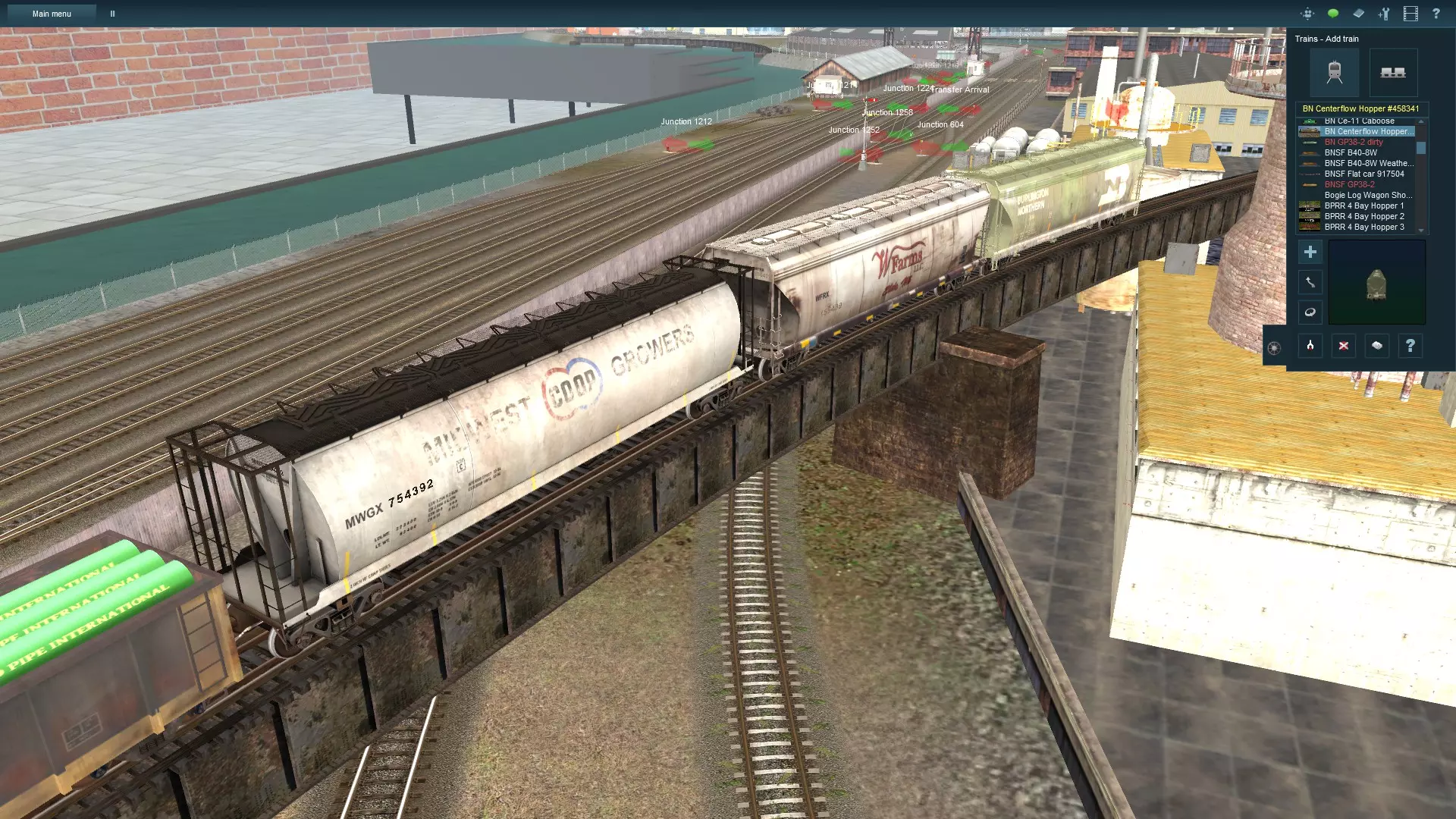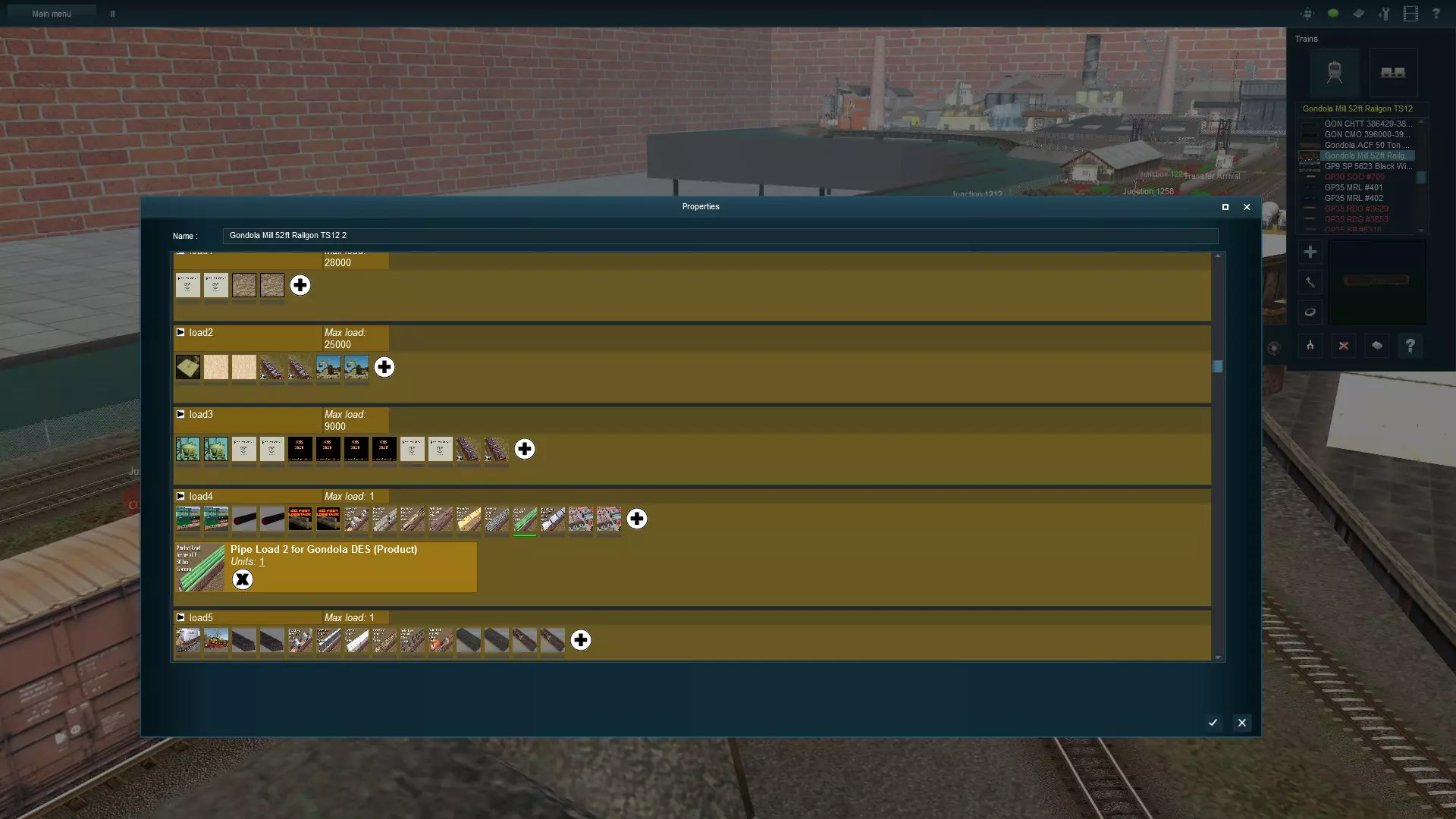 如你所见,我已经给 gondola 车厢装载了管道。改变装载货物是个好主意,因为这样能为混合货运增添“混合”的元素。完成这些后,我按照这个步骤又挂了几节车厢。