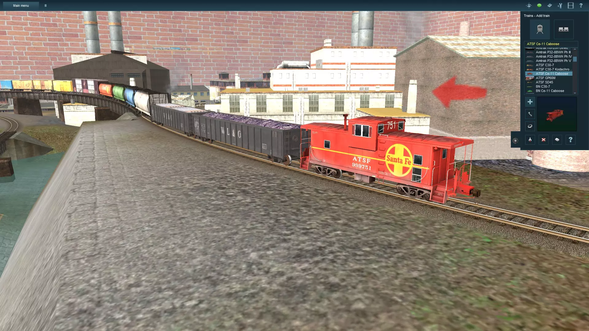 最后是守车。选择守车时,尽量使用与机车相同的铁路名称。我没有任何BNSF守车,所以用了一个ATSF Ce-11型守车。完成了!好了,列车编组完成!