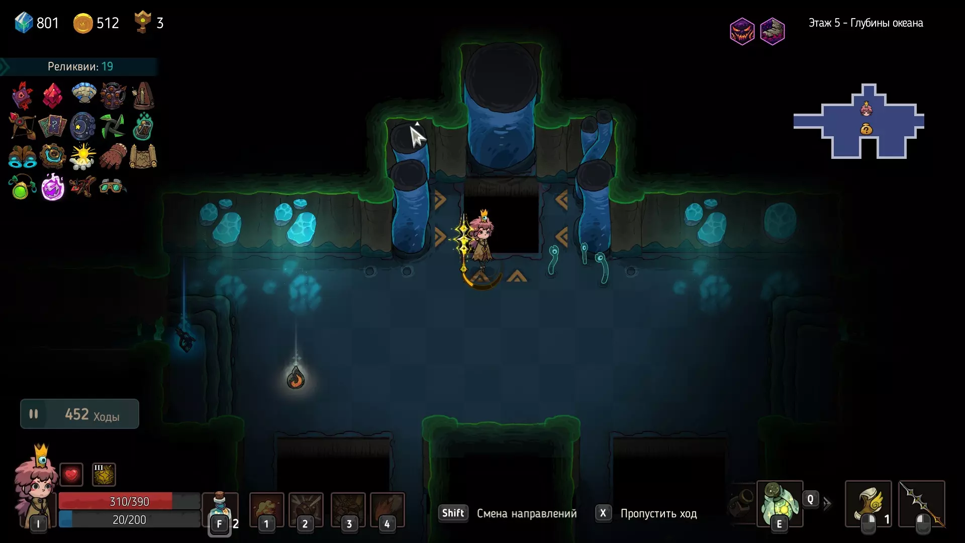 要发现这些秘密区域,至少需要一次瞬间传送。借助瞬间传送,你可以发现隐藏路径,只需将鼠标悬停在格子上,有路径的地方就会激活移动选项。此外,还可以通过技能或道具对格子施加元素效果,但这种方式不太方便。