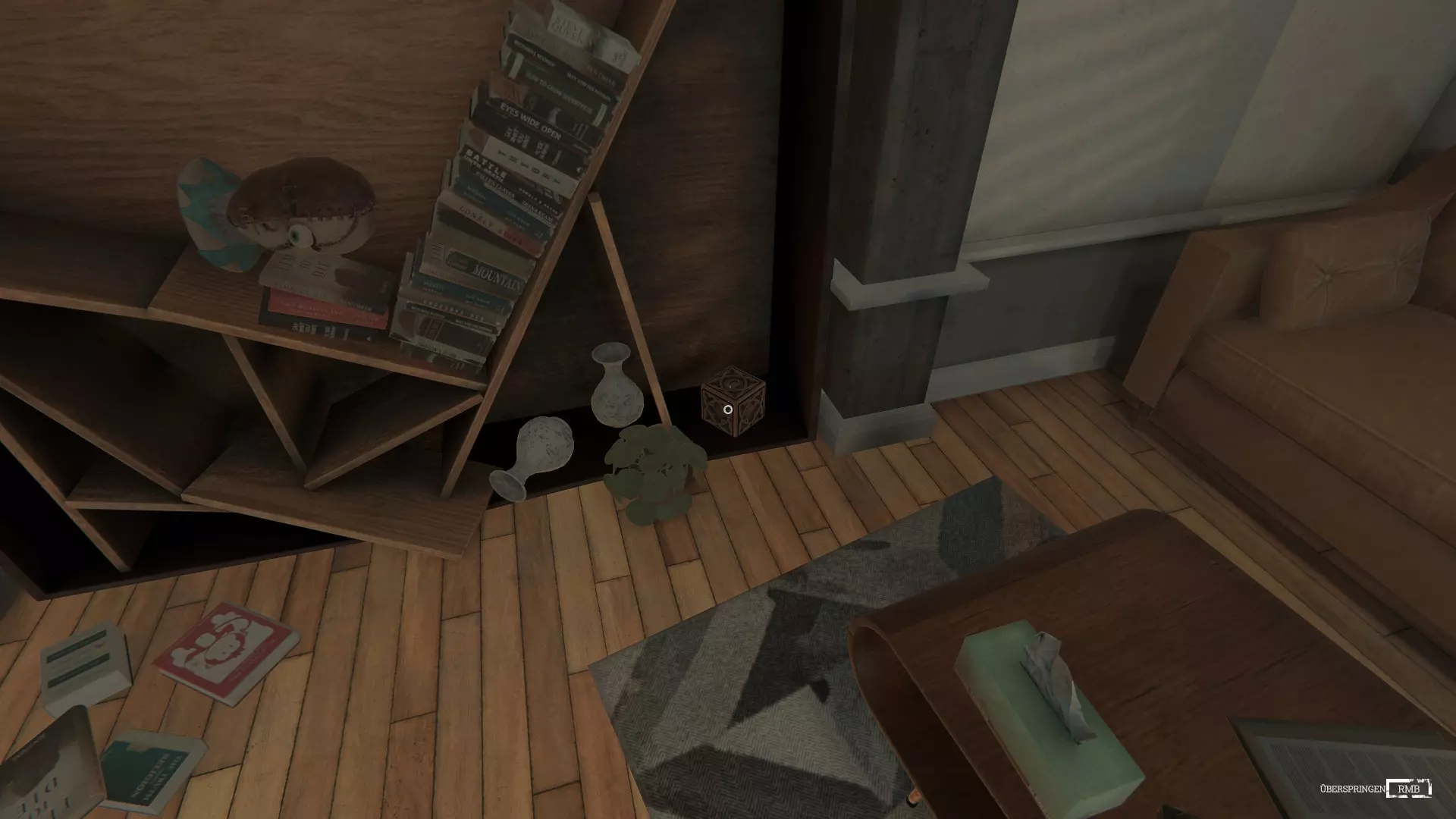 5. 立方体 第五个立方体藏在治疗室的架子上。会有一段剧情,治疗师会去给你拿水,这会给你环顾房间的机会。