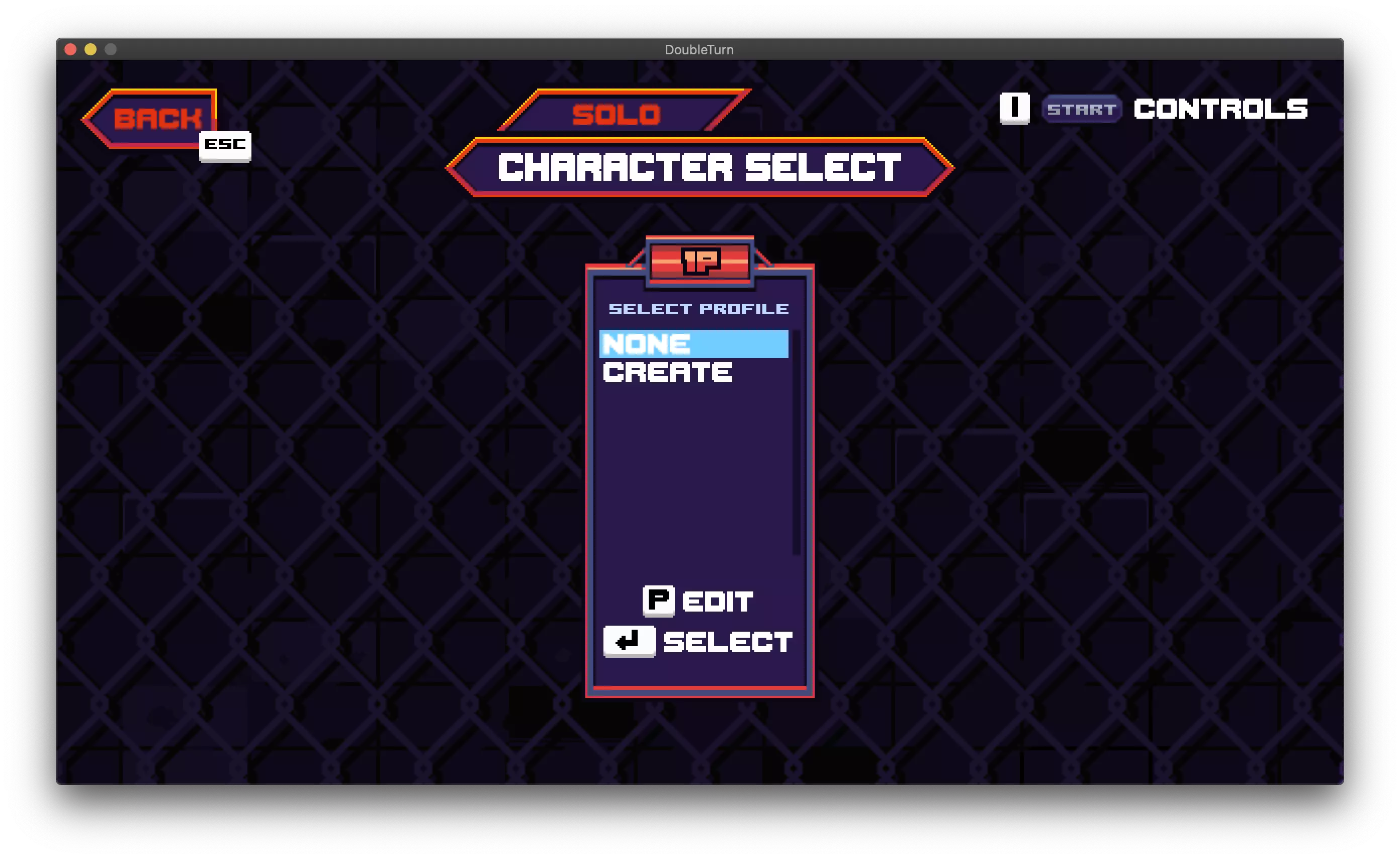 这将为你打开档案选择界面。有两个标准选项:【无】和【创建】。使用上下按钮(默认情况下为游戏手柄的方向键或键盘上的箭头键)在列表中上下导航。选择【创建】后确认即可。
