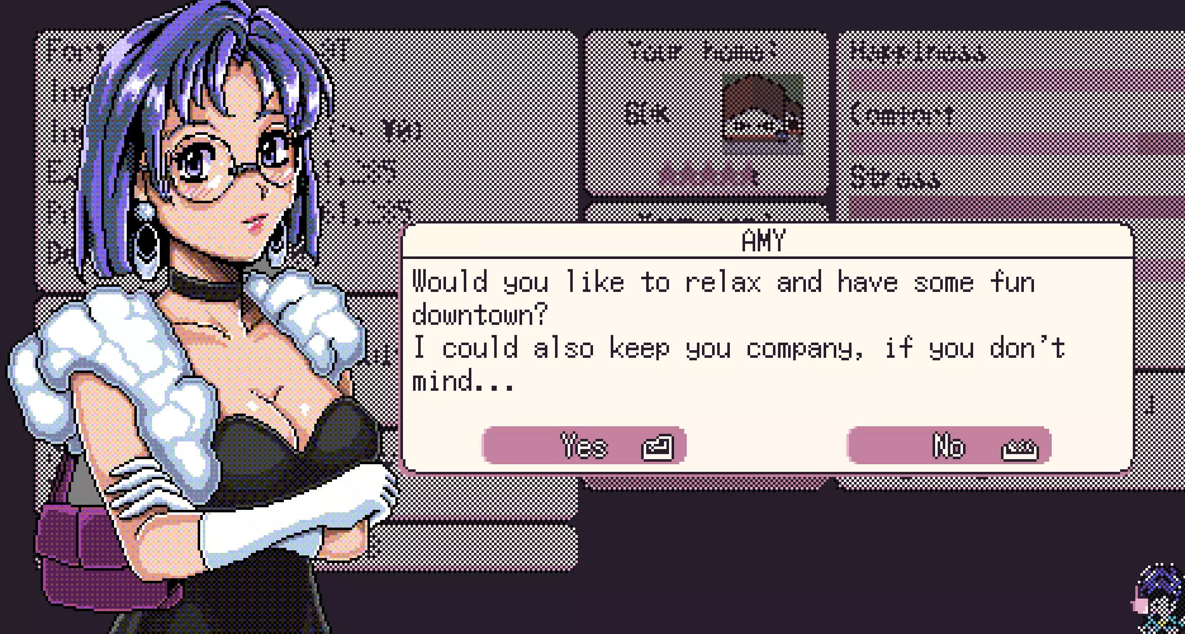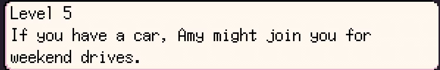 这是我的第一份攻略,它会简单介绍二十一点的基本玩法、一些技巧,以及游戏的基础操作,适合刚接触这款游戏的新手。 (抱歉可能存在错误或语法问题,这份攻略我做得比较仓促,只快速浏览并修正了一些问题) 第一步 1. 等待周末,前往酒吧。 注意:你需要有车,或者可以叫有车的朋友一起出门。只要你身体健康,有车的话随时都能出门! 另外,当你等级达到5级且拥有车辆时,艾米可能会在周末和你一起开车兜风,这能显著提升你们的友谊值。 你需要的车辆示例