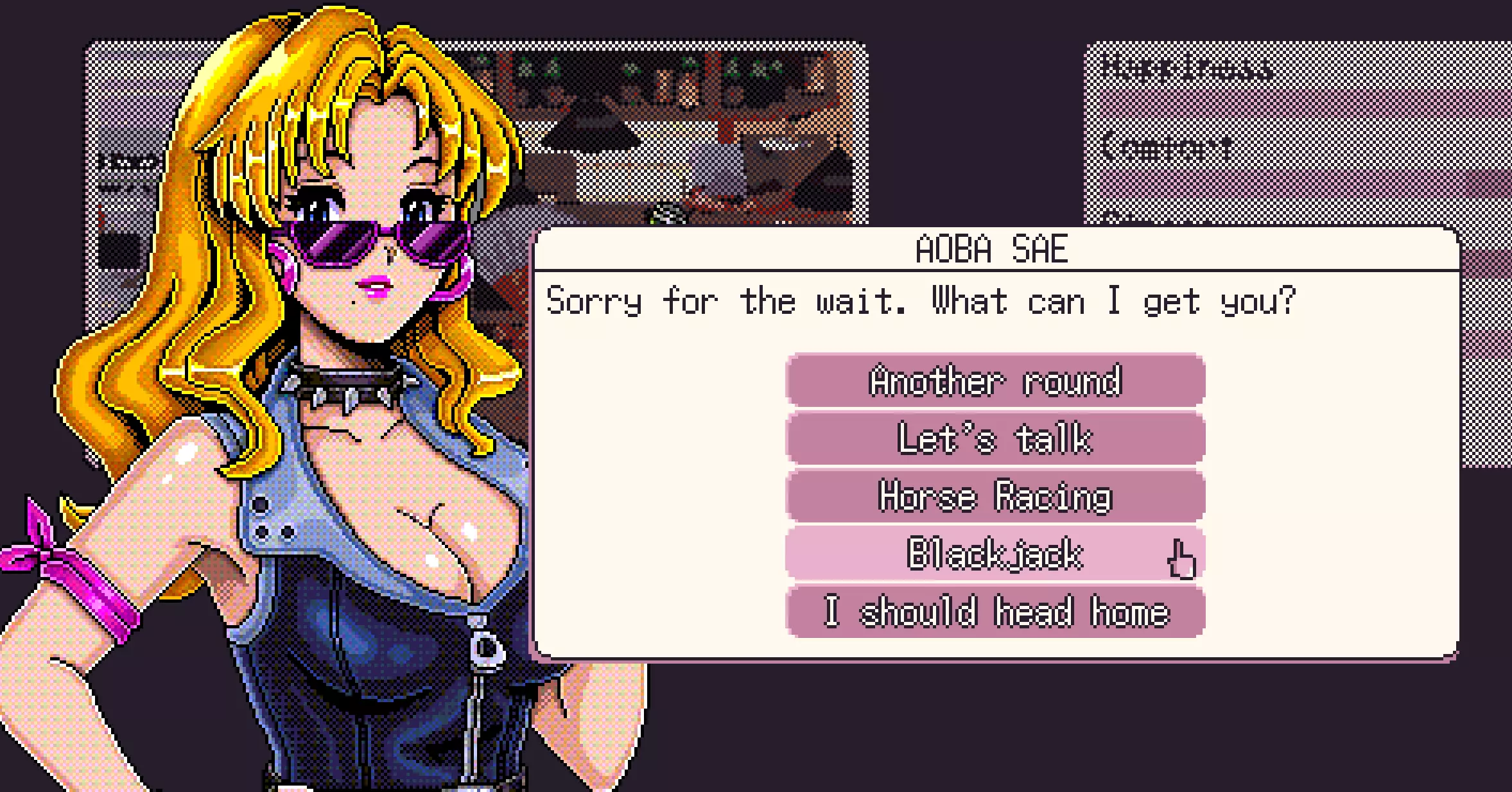 第二步 步骤2:你到达酒吧后点击,会遇到佐惠。点击浏览各种事件,并记下你遇到的重要提示。之后,你会看到一系列选项,这才是本指南真正开始的地方,选择二十一点(本指南的重点)。
