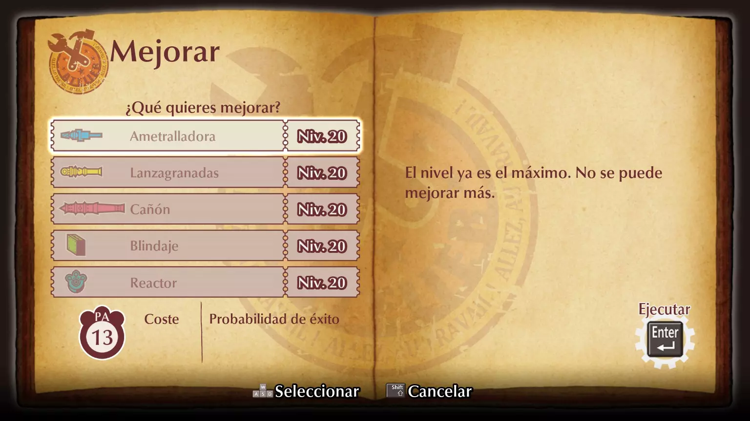 工匠大师 将任意一项内容强化至满级。 你只需将任意武器强化至满级即可,不过在二周目(NG+)中会更容易,因为你能更频繁地获得古老炮管,反应堆或装甲的强化也是如此。