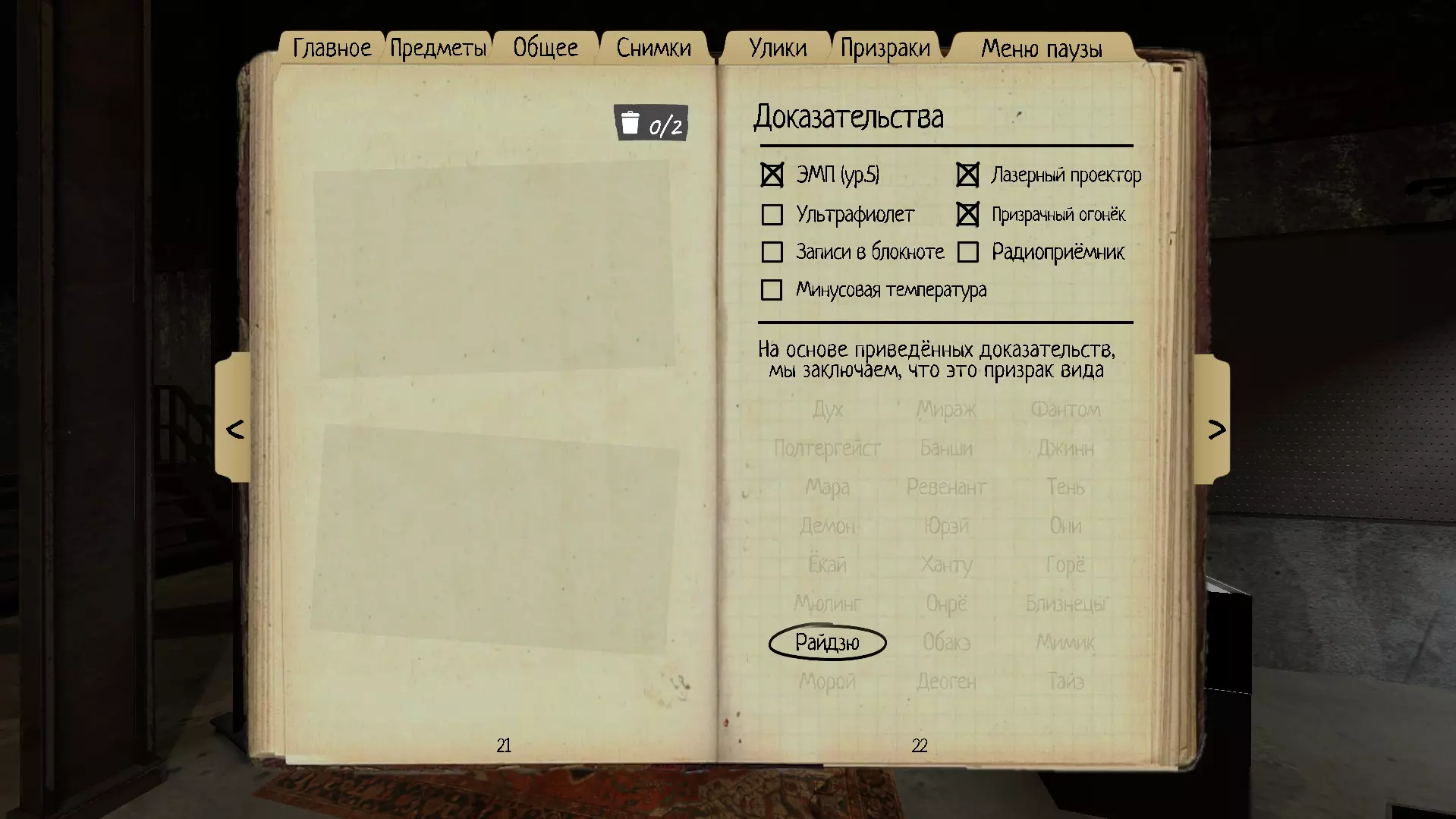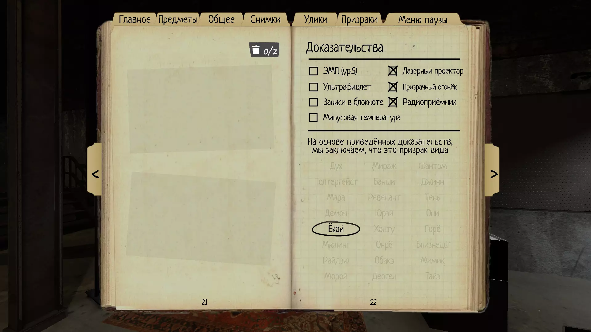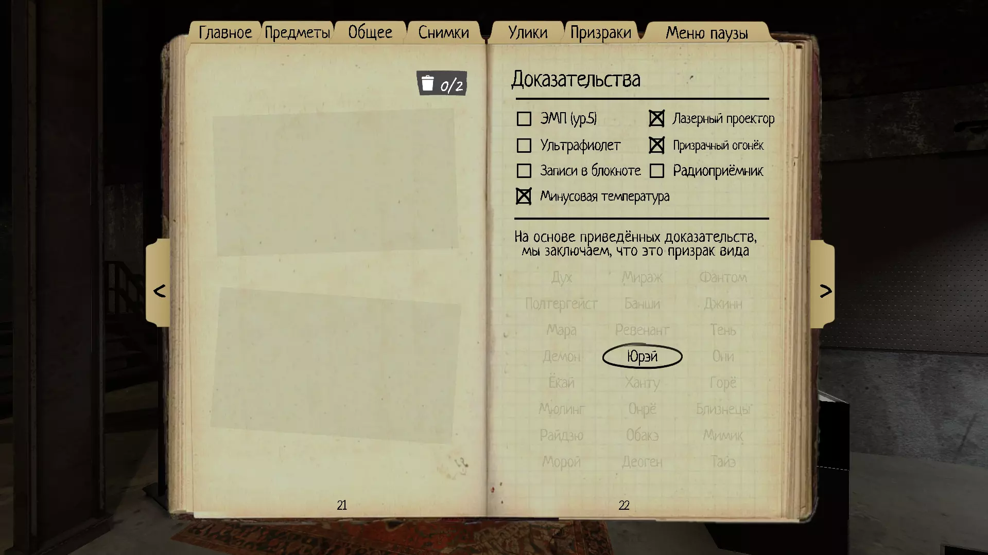 11. 幽霊(Yurei) 幽霊对理智的影响比其他类型的鬼魂更强。如果用香薰净化幽霊的死亡地点,鬼魂的移动将暂时受到限制。 理智阈值:50% 速度:1.7米/秒 证据:幽灵 Orb、刺骨寒温、点阵投影仪 特殊能力:香薰可使幽霊在90秒内无法离开其所在房间。可以使用运动传感器来观察使用熏香后鬼魂是否仍留在房间内。在使用熏香的那一刻(而非狩猎结束后)开始计时。 拥有使7.5米范围内所有玩家理智值降低15%的能力。同时,会随机有一扇门完全关闭,并发出特征性的咔嗒声。 当当前所在房间内没有任何门时,无法使用其能力。唯一的幽灵(除了拟态之外),能够关闭入口大门(当然,前提是它的房间靠近入口)。 如何在没有线索的情况下在启示录III难度中识别:在调查期间,应将幽灵房间的门完全打开,以观察尤雷亚的独特能力。这种能力很难被拍到,因此更多是通过听觉来识别——你会听到两声咔嗒声。这个声音非常有特点,如果你使用EMP(三级),EMP会在该位置立即显示2次互动,随后这2次互动会同时消失。请注意,每种鬼魂在猎杀或灵异现象期间都可能以同样的方式与门互动并关门。 如果鬼魂在没有灵异现象或猎杀相关事件的情况下关闭主入口门,那它一定是怨灵。对怨灵使用圣木后,它将在90秒内无法离开其所在房间,计时从使用圣木的那一刻开始(而非狩猎结束后)。进行此测试时,需在房间的每个出入口都放置运动传感器。如果在90秒内怨灵离开了房间,那么它就不是怨灵。为排除巧合的可能性,建议多次进行此测试。