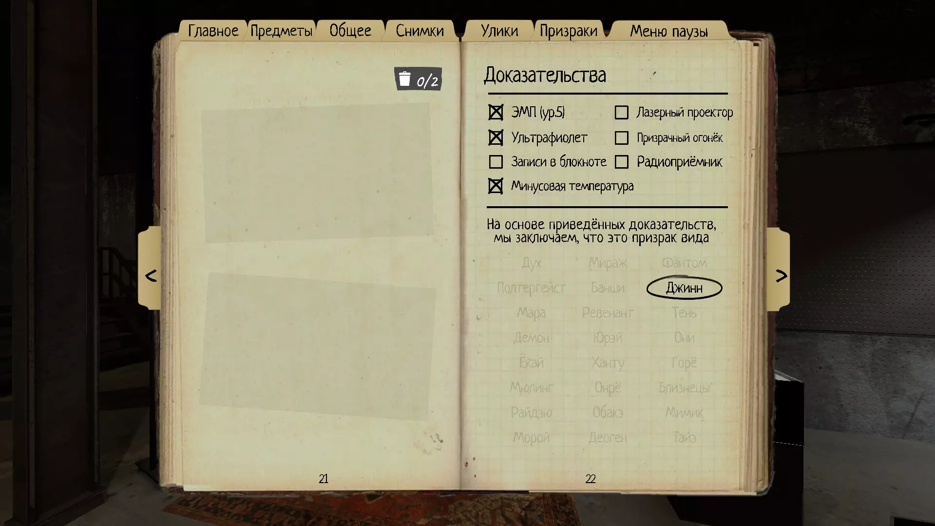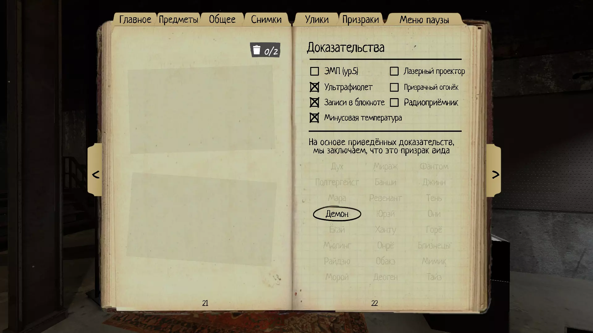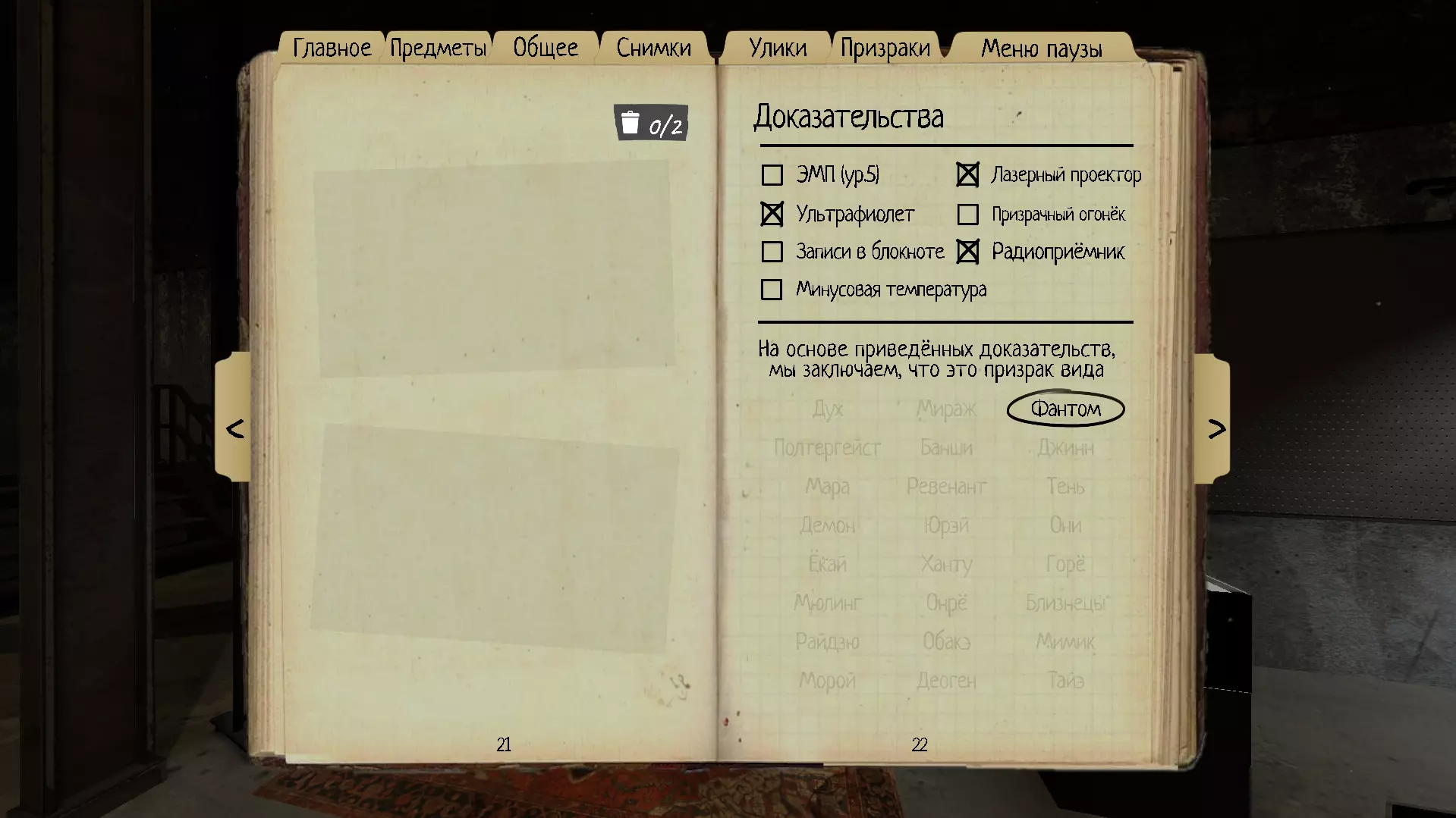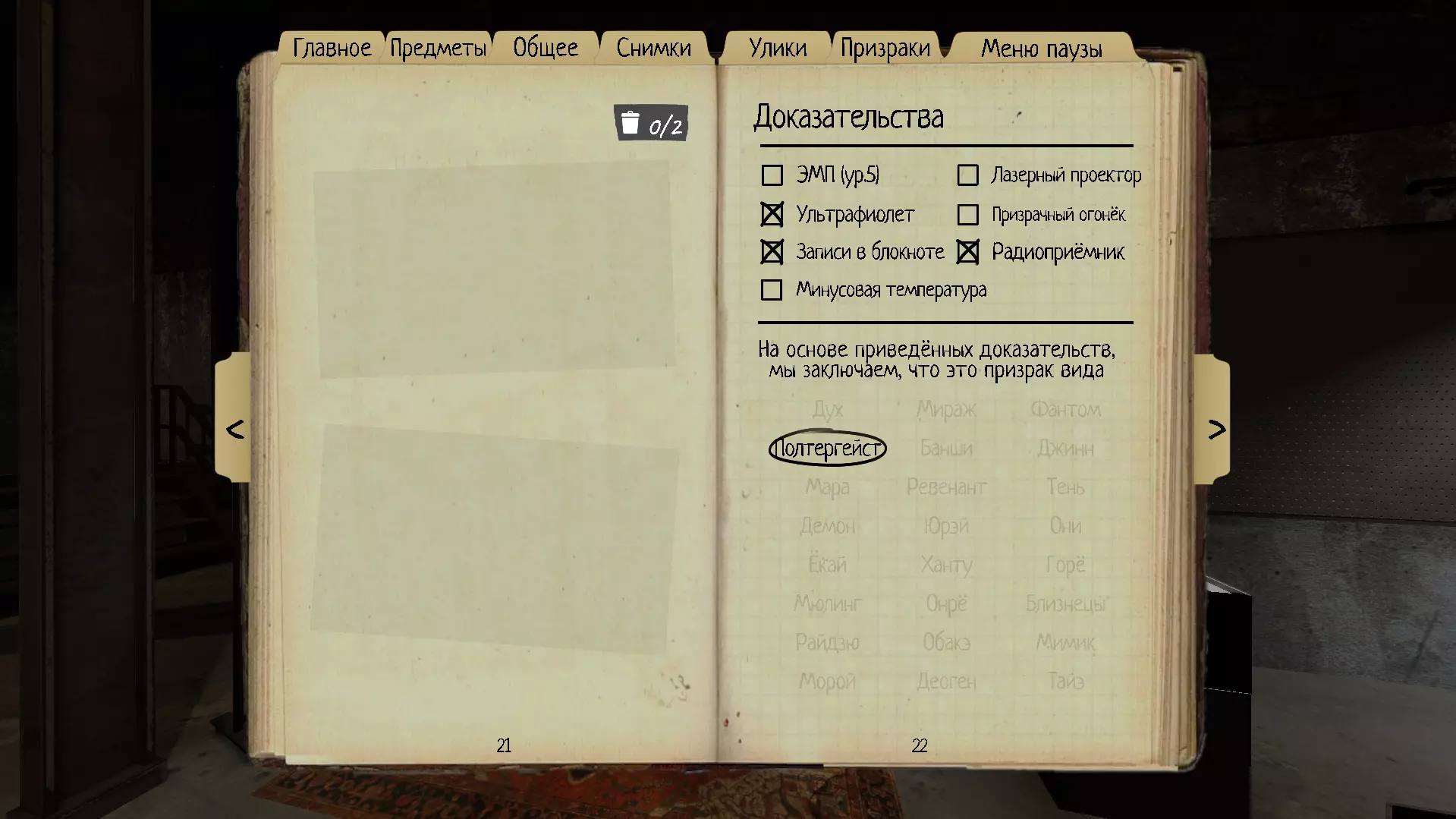 本指南将介绍《恐鬼症》中的鬼魂、它们的行为以及可用于识别特定鬼魂的线索。 简介 游戏中共有24种鬼魂,每场游戏需要从中识别出一种。证据可帮助你确定鬼魂种类,最多有3种证据,最少则为0种。如果你带着线索进行游戏,应该不会有什么困难(只需找到房间并获取3个证据),但如果线索少于3个甚至完全没有,一切就会变得更加困难,但与此同时,游戏也会展现出新的魅力,带来更多全新的体验。