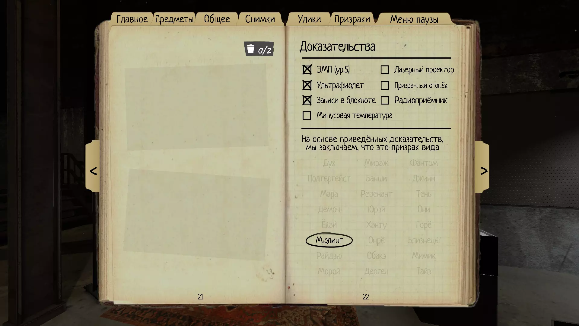 16. 迈林(Myling) 其显著特征是,它更常通过定向麦克风被听到,但在狩猎时会极其安静。 理智阈值:50% 速度:1.7米/秒 证据:EMF(5级)、紫外线、笔记本记录 特性:狩猎期间,只能在约12米的距离听到鬼魂的脚步声和声音。 通过定向麦克风可听到大量超自然声音。如何在没有线索的情况下确定世界末日III中的幽灵:有一种方法可以识别幻影:狩猎前,将手电筒(或任何在幽灵靠近时会闪烁的电子设备)扔进藏身处。狩猎时请注意以下几点: 1. 幽灵必须在同一楼层。 2.如果鬼魂的脚步声和声音在你的电子设备开始闪烁前不久就能被听到,那么这个鬼魂很可能是【莫林】。 如果你有TIR 3定向麦克风,可以借助它更大概率判断前方是否为莫林,因为TIR 3定向麦克风上有标记距离的弧线。莫林的脚步声在不超过12米的距离内可以被听到。当鬼魂在麦克风上接近15米标记时,关闭麦克风。如果听不到脚步声,那么很可能是【梦魇】。