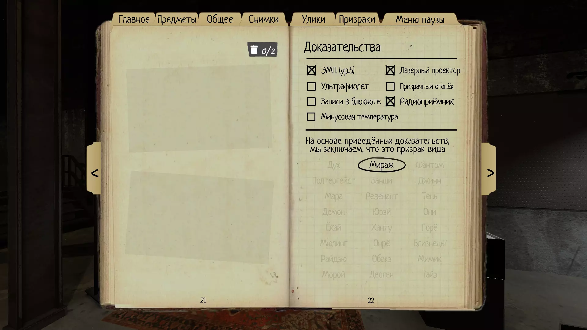 考虑到幽灵在狩猎期间的可见频率通常较低,请注意幽灵不可见的间隔时间是否比平时更长;如果幽灵以正常速度移动,但两次可见之间的距离更远,那么它可能是幻影。有时会锁定玩家并向其移动,同时留下EMP值(2级)。如果鬼魂消失(包括激光投影状态和超自然现象)时你拍摄了照片,而照片上有【鬼魂】的标签但没有鬼魂影像,那么这就是幻影。