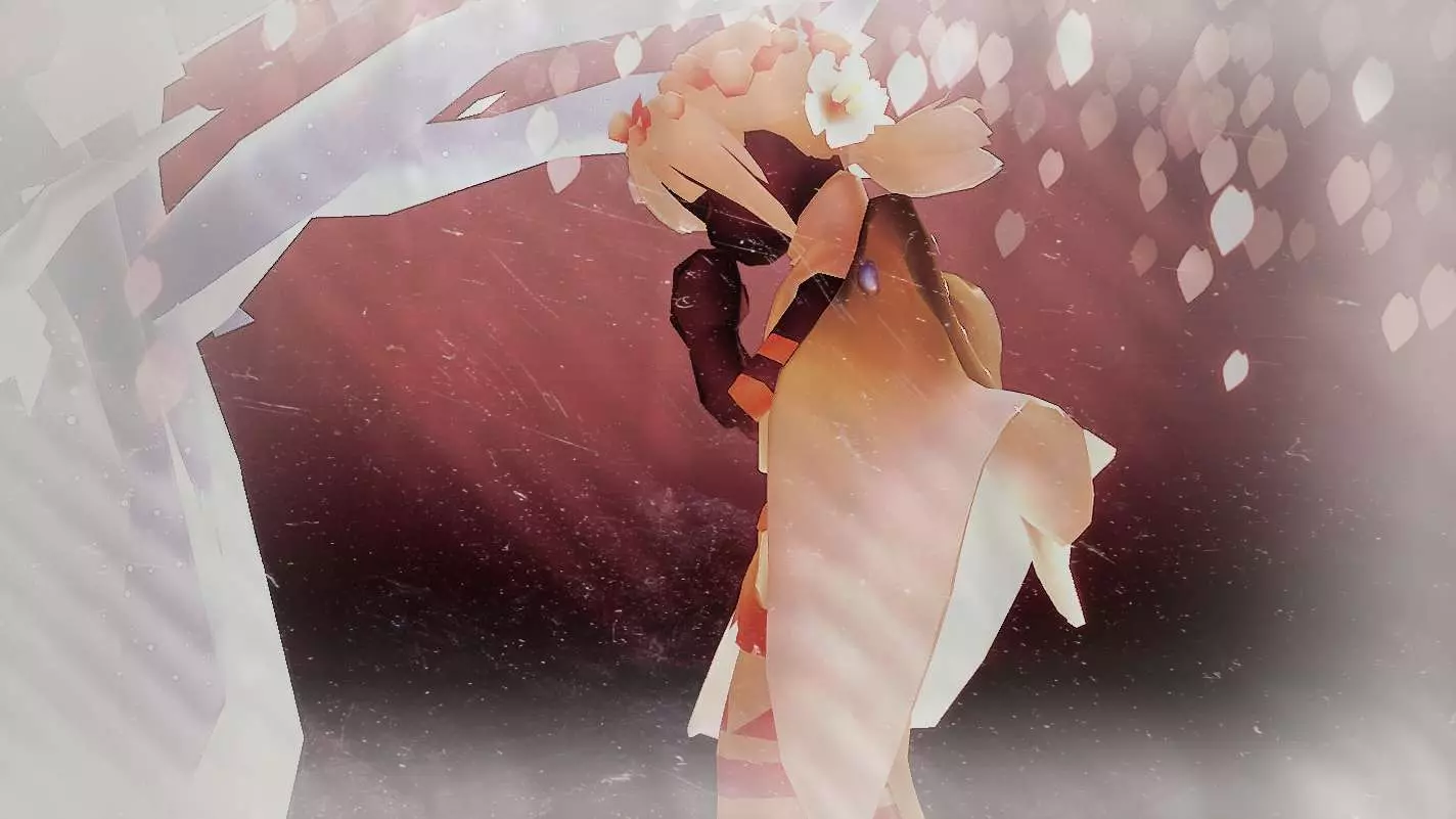 这是一组光遇创作投稿的美图,展示了装扮精致的光遇角色,角色在满是花瓣的场景中,氛围温柔治愈,给人美好的视觉感受。