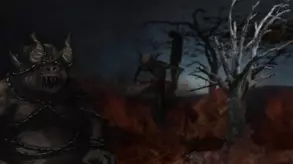 这是一则《Mythgard》的视频介绍帖,展示了游戏中火焰牛魔、巨鲤异兽、异能乐手、红衣灵体等风格各异的奇幻角色,呈现出游戏独特的暗黑奇幻视觉风格。