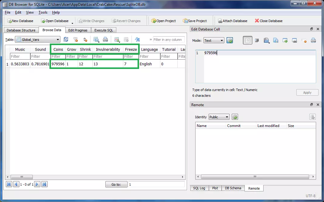 享受游戏的剩余部分吧 =) 额外内容 作弊(无限金钱和道具):按照你修复漏洞时使用的相同方法,如果你想更轻松地通关,可以添加额外的道具和金币(这不会影响【5,000 coins】成就!)。 当你浏览SqliteDB.db中的游戏数据时,会发现几行保留用于存储“Coins”“Grow”“Shrink”“Invulnerability”“Freeze”等值。只需将这些值调整到你想要的数值并保存数据库。重新启动游戏后,你将获得额外的道具。