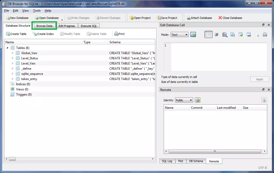 3. 将存档文件备份到其他位置 为防止出现问题或无法正常运行,只需将存档文件复制到其他位置即可。 4. 打开SQLite并关闭《Crab Cakes Rescue》(如果正在运行) 找到SQLite的安装或解压位置,运行“DB Browser for SQLite.exe”。 5. 将存档文件拖入SQLite窗口并切换到“浏览数据”选项卡 存档文件数据库将被读取,你会看到一些数值和表格。