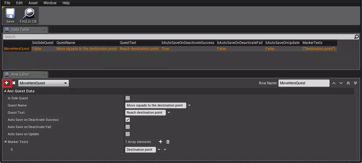 现在,是时候创建你的第一个任务了!从简单的任务开始,了解我们任务系统的核心机制,例如“移动到这里”。你需要打开任务数据表,添加新行(可通过点击小“加号”按钮实现),并填入所需数据。