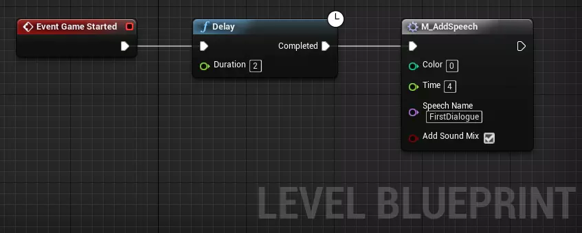 现在你可以开始编写一些对话脚本了。为此,我们需要进入关卡蓝图并使用M_AddSpeech宏。