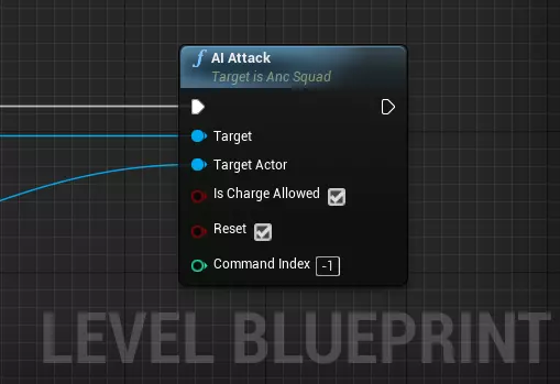 目标:你想要下达攻击命令的小队;即攻击者。 目标实体:攻击的目标,即受害者。可以是另一个AncSquad对象,或AncBuilding对象。确保其队伍索引与攻击小队不同。 是否允许冲锋:取消勾选此布尔值将阻止在攻击目标为另一小队时进行冲锋。 重置:与AI移动到节点类似,此变量决定命令是立即执行还是放入命令队列。 单人游戏AI 如果你不想下达具体命令,而是希望小队自主行动,可以启用其单人游戏AI。有两种启用方式:在生成点或蓝图中。第一种方法在生成点指南中描述。要在蓝图中为小队启用单人游戏AI,需对目标小队调用暂停小队AI函数。