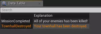 就是这样!你可以在同一时刻连续添加多个对话,游戏中有一个队列系统会逐个播放它们。 地图结束 在单人任务中,你需要在某个时刻触发地图结束——无论是胜利还是失败结局。 要实现这一点,你首先需要准备一个数据表,其中包含玩家完成或失败任务后看到的胜利/失败说明和描述。创建一个基于【Anc Win Lost Explanation】结构的数据表。
