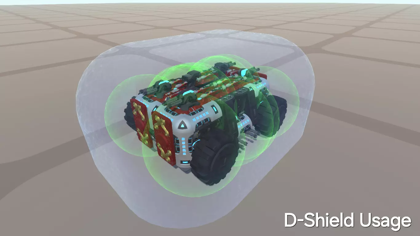 RR护盾会投射出一块与投射器本身无间距的小板状屏障。这类护盾最适合搭配除爆炸类以外的任何武器使用,爆炸攻击会让它们“哭泣”,并可能对您的载具核心造成伤害。 它们的覆盖范围从2x2区域到4x4区域不等,还能通过排列组合形成复杂的图案。 除了用于设计装饰外,我不推荐使用这类护盾。 总结 最后,您是否应该使用定向护盾?是的!(但RR护盾除外 :p) 定向护盾为游戏增添了一个巧妙的元素,它们能帮助玩家在载具设计上投入更多思考,以充分发挥载具的每一分性能。 此外,护盾的易碎性较低,这意味着它们不太容易脱落,因此将其安装在载具的第一层船体上是没问题的。