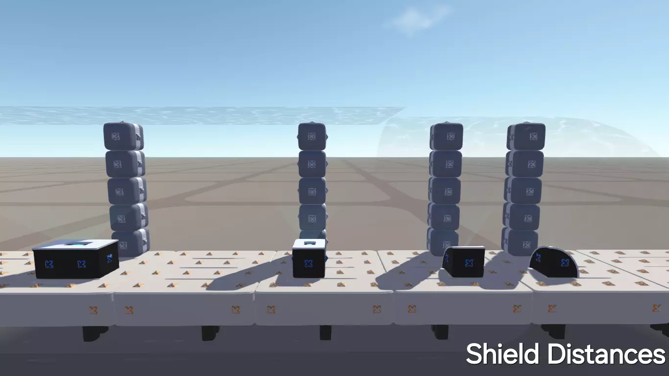 护盾会投射5x5或10x5的区域。建造完整护盾时,最好不要让它们重叠。