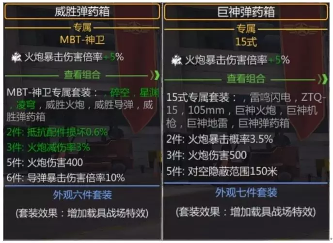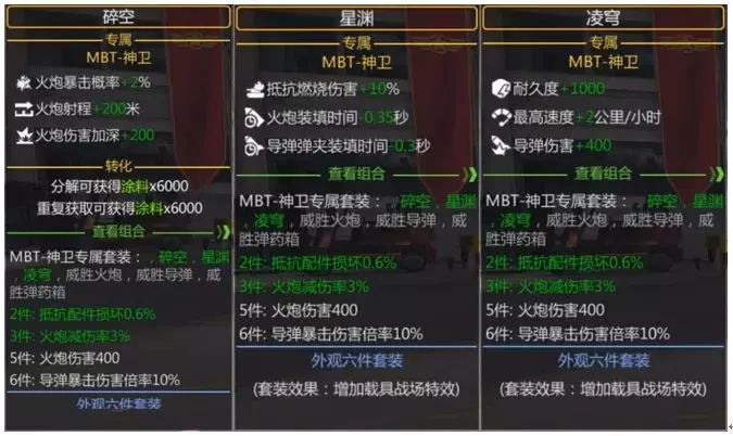 话已至此,我们就顺便来看一眼神卫的专属套装,随即就发现它完全照搬MBT-3000的黑金专属,只是把其中机枪相关的属性换成了导弹。话又说回来,除了星渊旗帜的两个减装填的数值有些抽象之外,其他属性确实是一等一的合适。单说这400火炮/导弹伤害、500火炮加深和430导弹加深就是非常顶级的属性和数值,然而更夸张的还在后面,仅需1980黑金的成本就能拿下价值9980黑金的普通盛会弹药箱的数值。