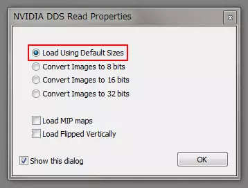 Photoshop Photoshop 您需要“Photoshop”以及“NVIDIA Texture Tools for Adobe Photoshop”插件 步骤01 加载选项 勾选“使用默认尺寸加载”