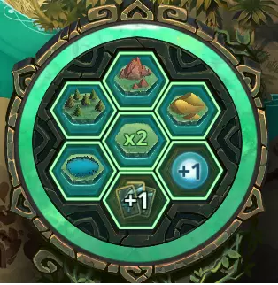 每回合,轮盘会允许我们执行以下操作之一: 放置土地到棋盘:两块普通土地(平原,无颜色)或一块特殊土地(湖泊、山脉或沙漠) 获得额外1点法力 额外抽一张卡牌 这些操作是互斥的,只能选择其中一项执行。 通常我们会使用轮盘在棋盘上放置土地,但也必须牢记另外两个选项,选择对自己最有利的操作。 特殊能力 如果卡牌文本有说明,生物可以拥有特殊能力。 以下是这些能力(括号内为英文原名): 迅捷(haste):拥有迅捷能力的生物在召唤的同一回合即可移动和攻击。刚开始游戏时,你也可以收集能量。还记得那些标有数字3的格子吗?你最多可以收集到两点能量!这些能量对于直接攻击敌方核心(从1号或2号格子发起)或者快速消灭威胁非常有用。这是一项新手玩家需要花时间掌握的实用技能。<开发中>