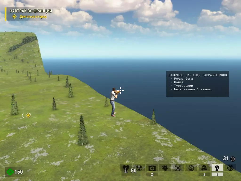 要知道,他距离初始位置有60000米。而且在我整个奔跑过程中,我遇到了各种森林、田野和山脉,它们都有碰撞体积(也就是它们是实体的,我可以在上面行走)。根据我的计算,要靠自己的力量跑到终点,你需要花费一个半小时以上的真实时间。而且这还只是单程。此外,可以推测整个地图面积为3600000000平方米,其中但愿至少有10%的面积得到了利用。 由此引出对Croteam的疑问:“什么情况,关键是什么情况?” 另外,我在地图边缘发现了它: