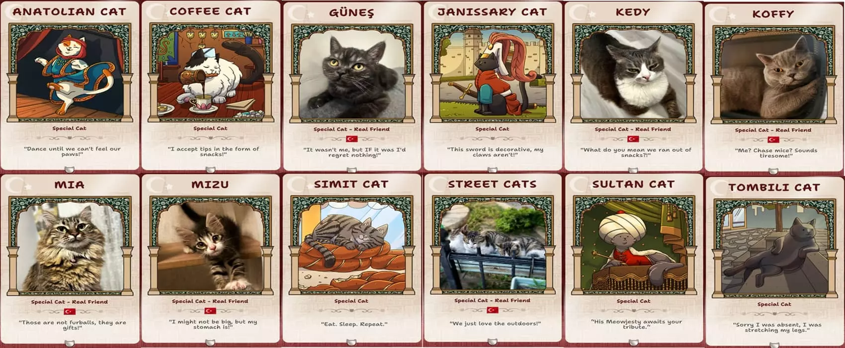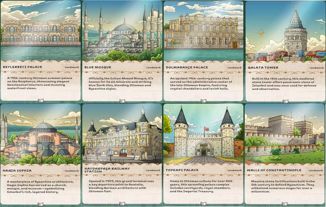伊斯坦布尔 注意: 1) 一旦找到全部12只特殊猫咪,将解锁后续关卡。 2) 本关卡需找到12只特殊猫咪、20个城市居民、200只普通猫咪以及8个地标才能成功完成。 特殊猫咪的所有位置