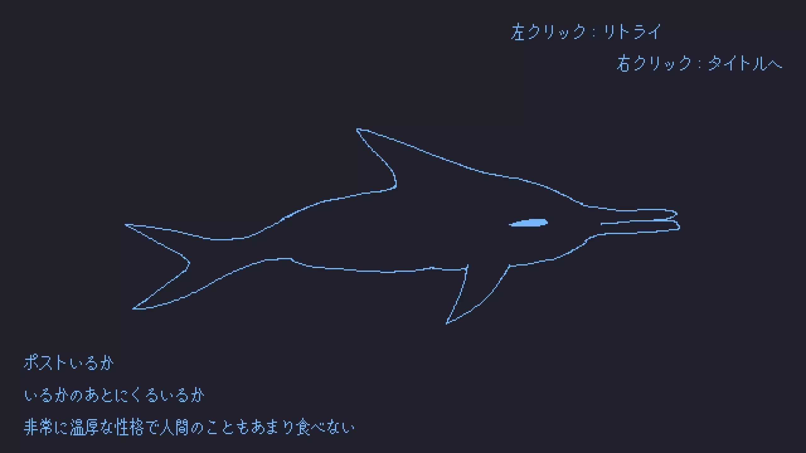 介绍 本指南由三部分组成: 1. 商店翻译 2. 故事翻译 3. 12只海豚描述翻译 这么晚了,我任性的蜂蜜芥末酱还醒着, 要不要告诉你,为什么海豚没有鳞片呢? 游戏简介 一款围绕【为什么海豚没有鳞片】的迷你2D射击游戏。 以高速攻略64个极短关卡,揭开海豚没有鳞片的秘密吧。 众所周知,海豚是没有鳞片的, 但真正知道理由的人并不多。 希望本作能帮助更多人理解【海豚为什么没有鳞片】。 数字 ・64个关卡 ・20种敌人 ・15种射击方式 ・15种技能 ・12种海豚 故事 一场战争结束了,人鱼全都死去。成为胜者的海豚们,在海底筑起了巨大的都会。不久之后,海豚们为了扩张版图,开始进军到陆地。 海豚们手持铁制武器,并以自身如金刚般的鳞片武装。 才刚学会使用火的人类,根本无法与这些受过严格统制的重装步兵──海豚──对抗。 就像人鱼的命运一样,出于对敌人的敬意,大部分人类被杀死。 少数人类则被留下,成为奴隶,用来协助海豚们不习惯的陆上生活。 基伊普洛斯也是被海豚占领的土地之一。 这是一座庞大的城邦国家,夹在让人联想到永恒的无边沙漠与遥不可见对岸的巨大河川之间。 同时,这里也是人类奴隶(因为不存在“海豚奴隶”,所以这个说法听起来有点奇怪)数量最多的城市。在基伊普洛斯的奴隶当中,有一位名叫佩涅塔的女子。她曾经是位高阶女祭司,如今却只能从早到晚替海豚们擦拭鳞片。擦鳞片是基伊普洛斯奴隶特有的工作。贯穿基伊普洛斯的河风吹起沙尘,把细沙吹进海豚市民鳞片的缝隙里。若直接进入水中,吸了水的沙子会卡进鳞缝,黏在皮肤上,引起发炎。因此,来到浴场的海豚会先让奴隶帮自己清理鳞片,把沙子去掉,再泡进冰凉的水里。只有在这种时候,人类纤细灵巧的双手才派得上用场。擦鳞片是奴隶少数被允许直接触碰海豚的工作。那一天,佩涅塔依然在浴场,为数百只海豚擦拭鳞片。最后一只海豚离去后,她才独自洗去满身汗水。 然后开始清理浴场——虽然辛苦,却是她得以独处的宝贵时光。 在排水并擦拭浴槽时,她的脚尖碰到某个坚硬而冰冷的东西。 一片手掌大小、闪闪发光的五角形——脱落的海豚鳞片。 佩涅塔捡起它,立刻把它藏到衣服里。周围没有人注意到。 月下,佩涅塔回到奴隶居住区。守门的海豚没有留意她。 她小心翼翼地走过沉睡奴隶的房间,来到角落的小芦苇垫上躺下。 她从胸前取出那片鳞片,举向月光,映出贝壳内侧般的虹色光泽。 隔天,工作结束后回到房间,她又取出藏在垫子下的鳞片。 接着,用回程时在垃圾场捡来的铁片,一点一点地削磨鳞片。虽然没有明确目的,但这成了佩涅塔的习惯。 睡前的小小工序日积月累,终于从鳞片中刻出一个美丽的流线形。 当她继续削尖其中一端时,那形状竟隐约像一只海豚。 于是,她刻上了眼睛、尾鳍与吻部。此刻,她手中已经有了一只小小的海豚。 啊,真是莫名地滑稽。佩涅塔忍不住在房间角落笑了出来──这是她许久未有的笑容。 她开始偷偷携带这个小雕刻,就像护身符一样。 偶尔在浴场又找到掉落的鳞片,她也会带回来,慢慢完成新的作品。 “这材质,看起来和我们的鳞片相同啊。这是你做的吗?” 大意了。她在帮海豚擦鳞片时,不小心当着它的面掉落了雕刻。 这算是什么罪呢?我会被杀吗“奴隶的性命微不足道。 能不能蒙混过去?但这确实是自己亲手刻的…… “是我刻的。这是我用在浴槽里捡到的鳞片削出来的。” 最后,佩涅塔没有撒谎。海豚交替望着她与雕刻。 “嗯,真是可爱的。你,也替我刻一个吧。” 海豚咔地扯下一片自己的鳞片,递给她。 佩涅塔尽可能快地完成了作品。那只海豚四处炫耀,展示着雕刻。 很快地,佩涅塔开始收到来自其他海豚的委托。 她不停削着鳞片。渐渐地,擦鳞片的工作转交给其他奴隶。 在她不知情的情况下,雕刻鳞片成了海豚之间的流行。 如今,拥有鳞片饰品或家具,甚至成了一种地位象征。许多奴隶,甚至海豚本身,都被投入到鳞片加工之中。佩涅塔持续削着鳞片。 基伊普洛斯开始征收鳞片,准备建造巨大的鳞片海豚雕像。 然而,鳞片终究不够了。既然不足,就去抢夺。 于是,世界各地爆发了海豚之间的战争。海豚与奴隶都大量死去。佩涅塔依旧削着鳞片。 直到有一天,鳞片再也没有送到她手上。她打磨完最后的存货,久违地闲了下来。 “你还在这里啊。”曾经的那只海豚来到作坊。仅剩一点鳞片。 “现在可不是削鳞片的时候,这里很快会成为战场。快逃吧。” “要逃到哪里?”“我不知道。但至少人类不会因为鳞片而被袭击。” “那你呢?”“现在海豚到哪里都一样。”佩涅塔顺着河流向下游逃去。后来,她与其他境遇相似的人们会合了。 传言说,正当海豚内部自相残杀之际,人类的抵抗军也趁机发动了攻势。 长途跋涉之后,他们抵达了一座海边小村落。那里没有海豚。 人们开始在村里生活,佩涅塔成了一名渔夫。 某日捕鱼结束时,一只没有鳞片的海豚从水面探出头来。 “打扰一下,可以聊几句吗?” “海豚之国已经彻底崩溃了。我们已经无意再战,请务必转告人类。” “我明白了。”“kyui-kyui。一定要遵守约定哦。”那只海豚慢慢游远了。 自从那场鳞片战争以来,直到今天—— 再也没有出现过带鳞片的海豚。据说以佩涅塔的经历为蓝本的《鳞片传说》,虽然各地版本有所不同,但仍在整个基伊亚地区广泛流