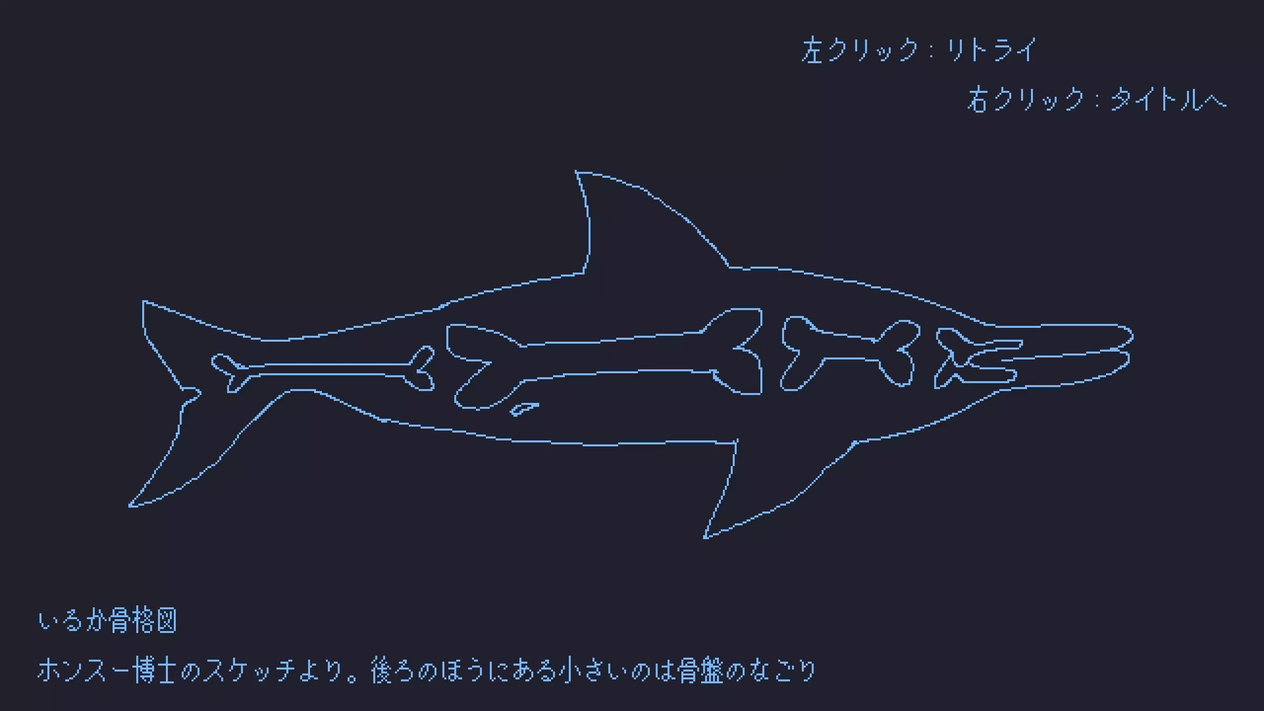 海豚骨骼图 出自本须博士的素描。后方的小骨片是骨盆的残迹。