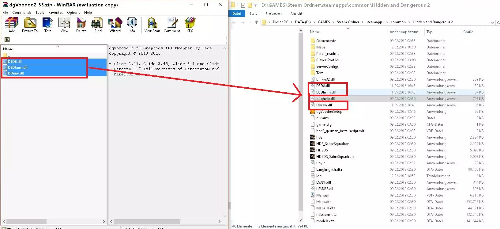 8. 将这3个文件解压到你通过Steam库打开的【隐藏与危险2】游戏文件夹中