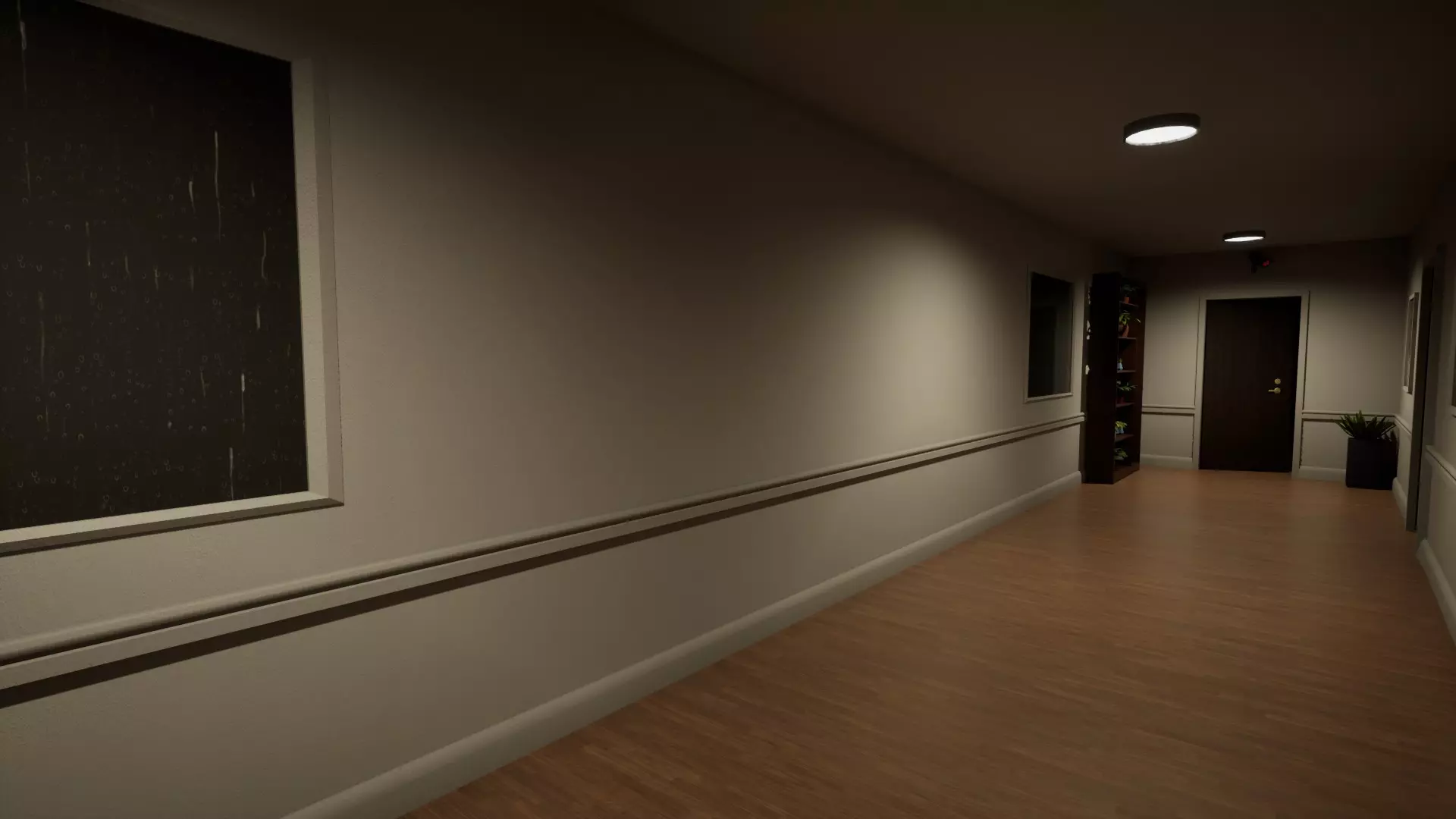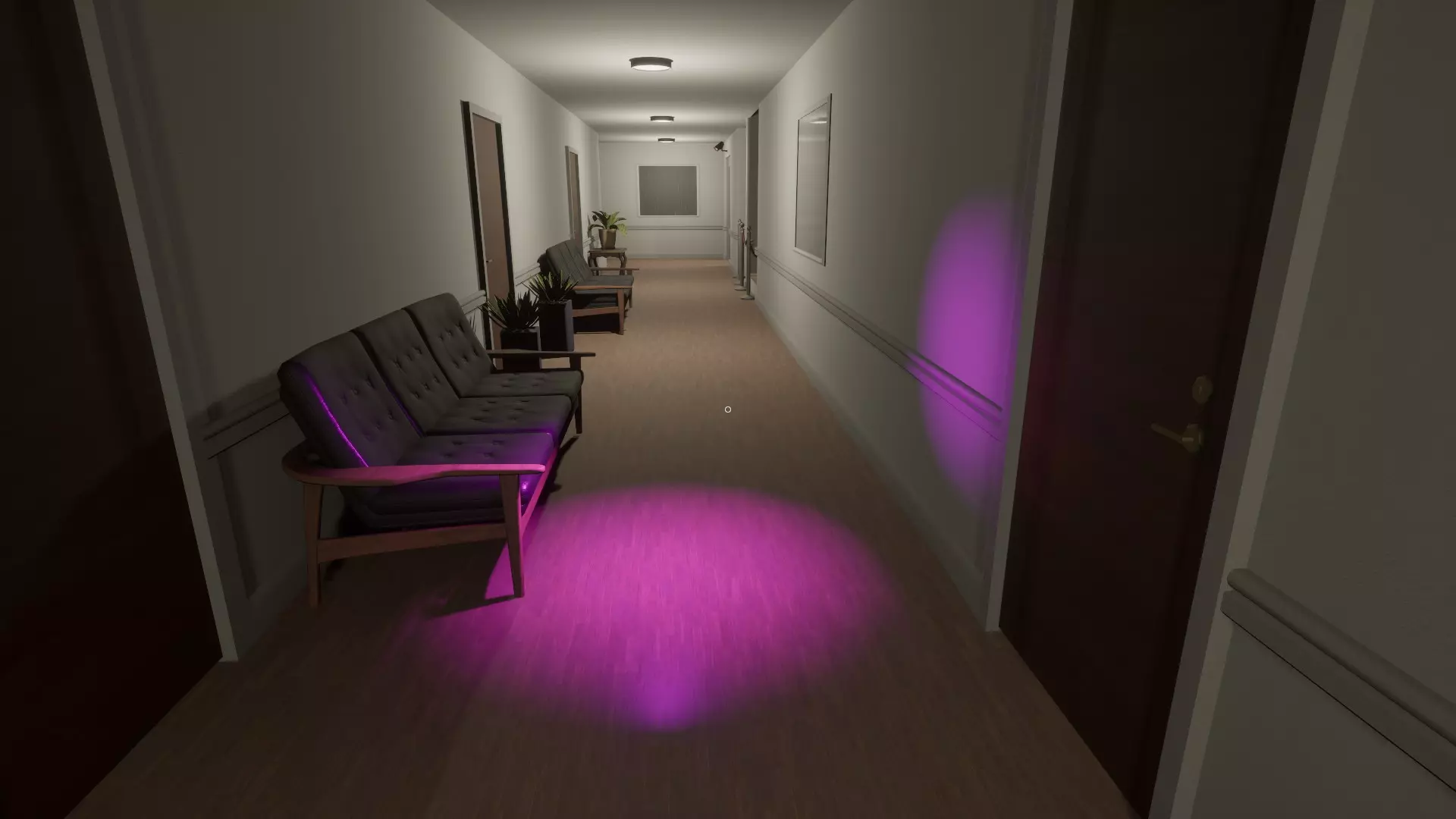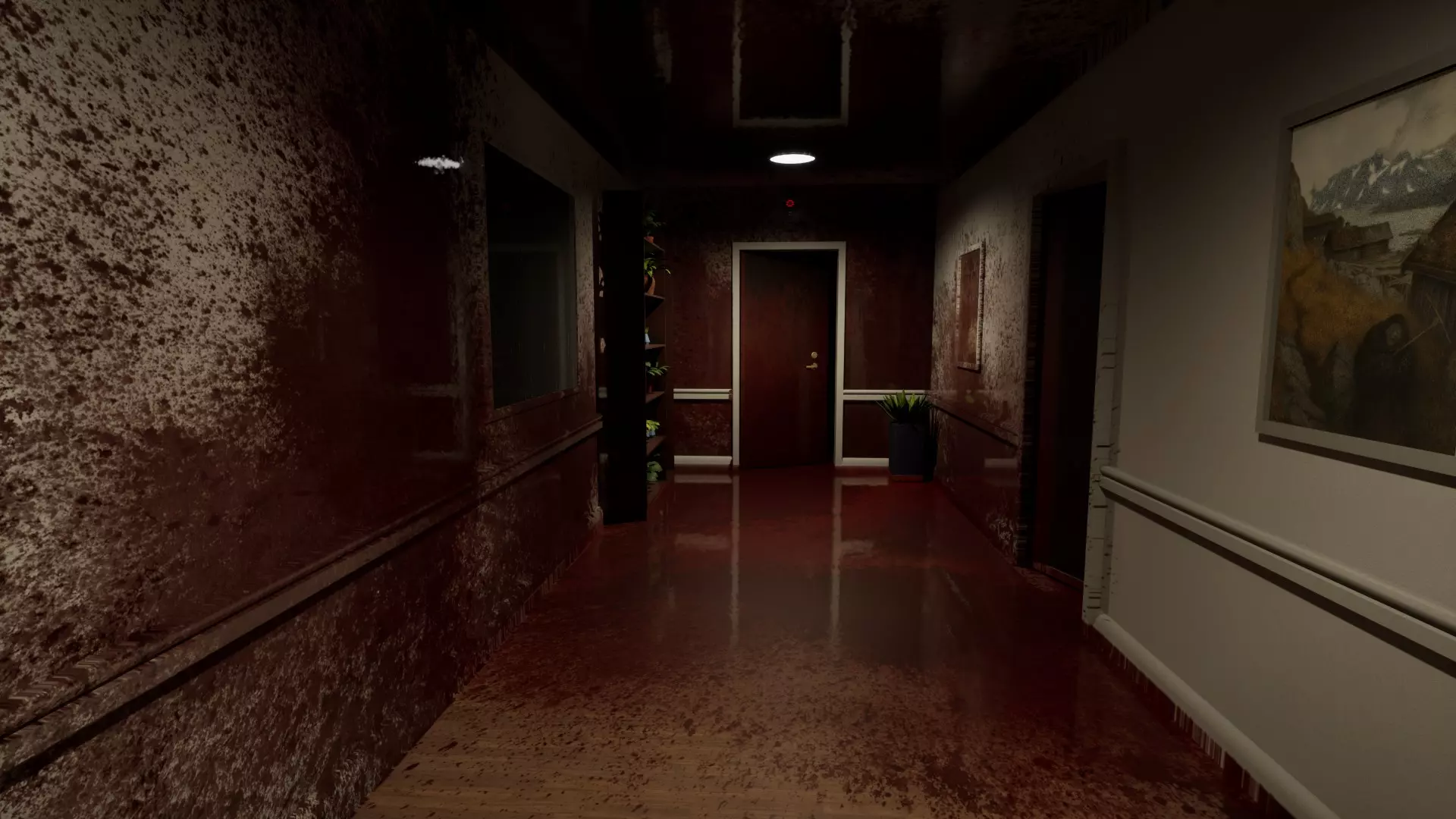 血腥走廊 左侧走廊布满血迹,看起来像是尽头的门内有血液喷涌而出。