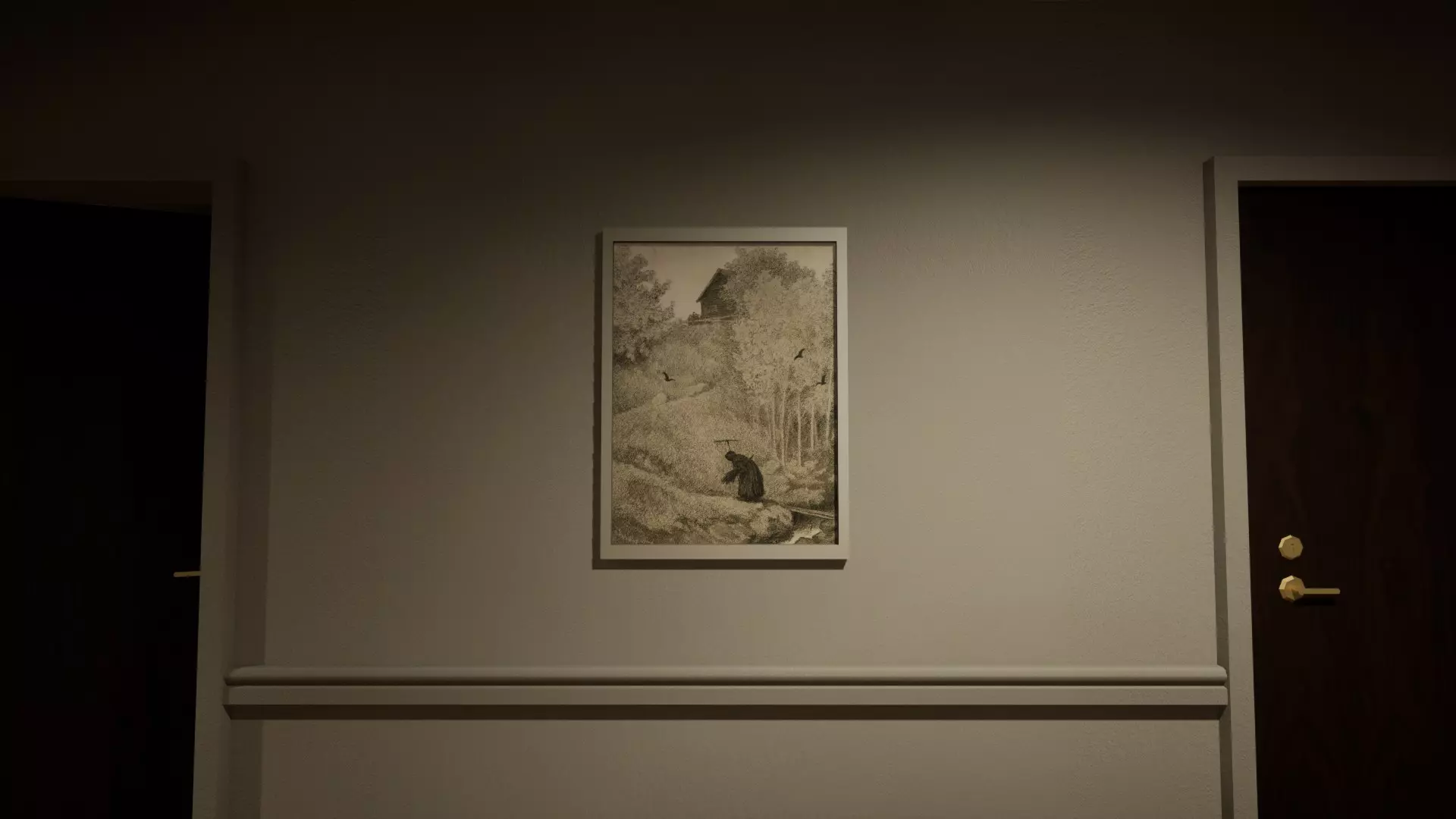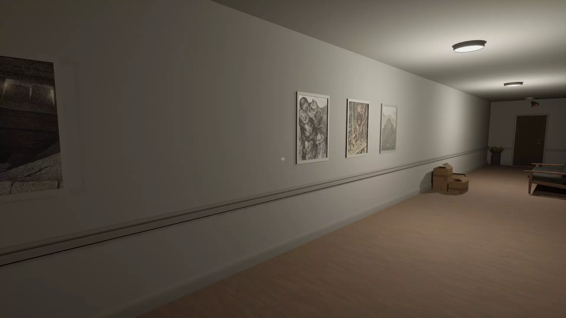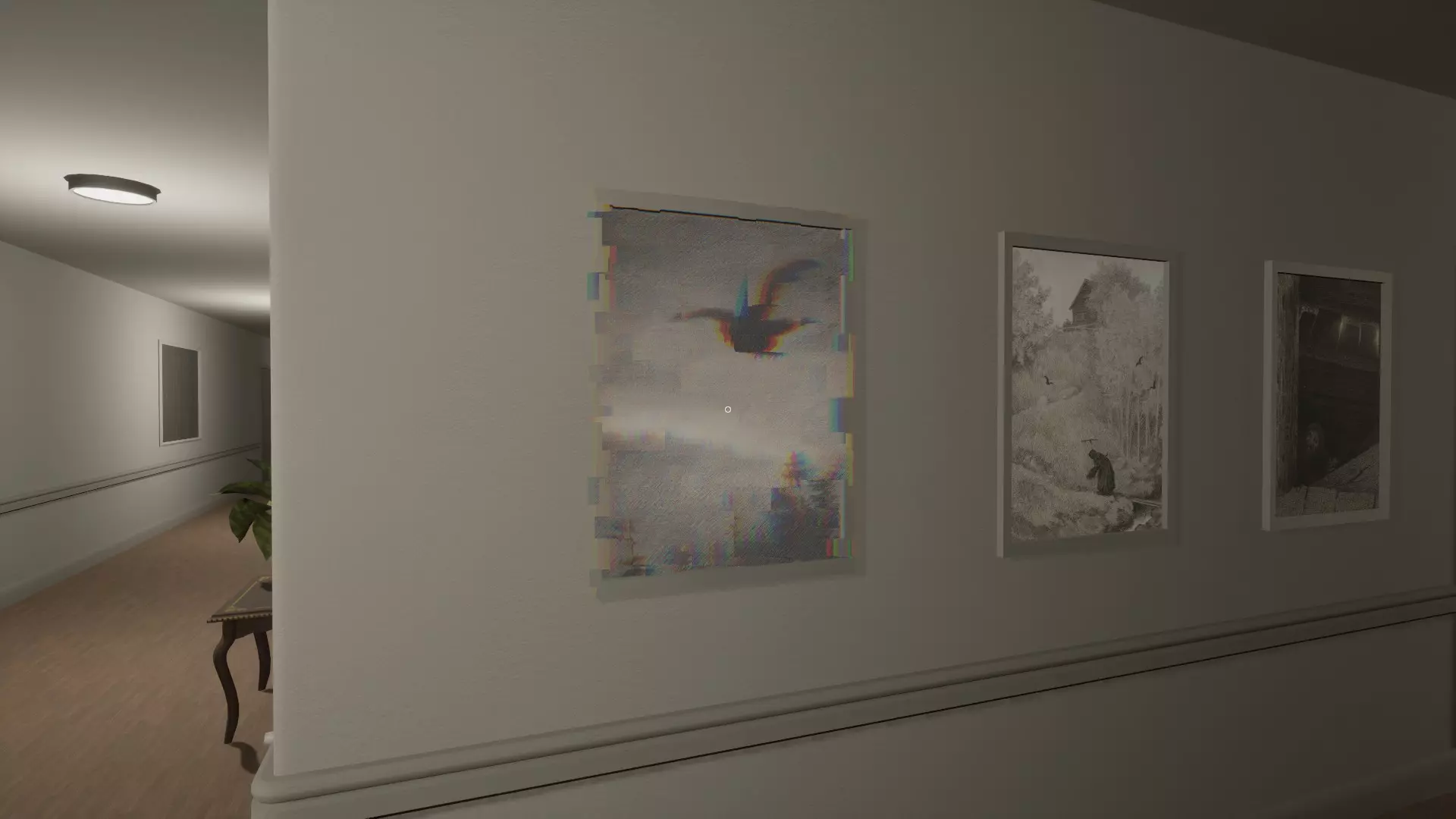 走廊画作互换:左侧走廊的一幅画与右侧走廊的另一幅画进行了互换。
