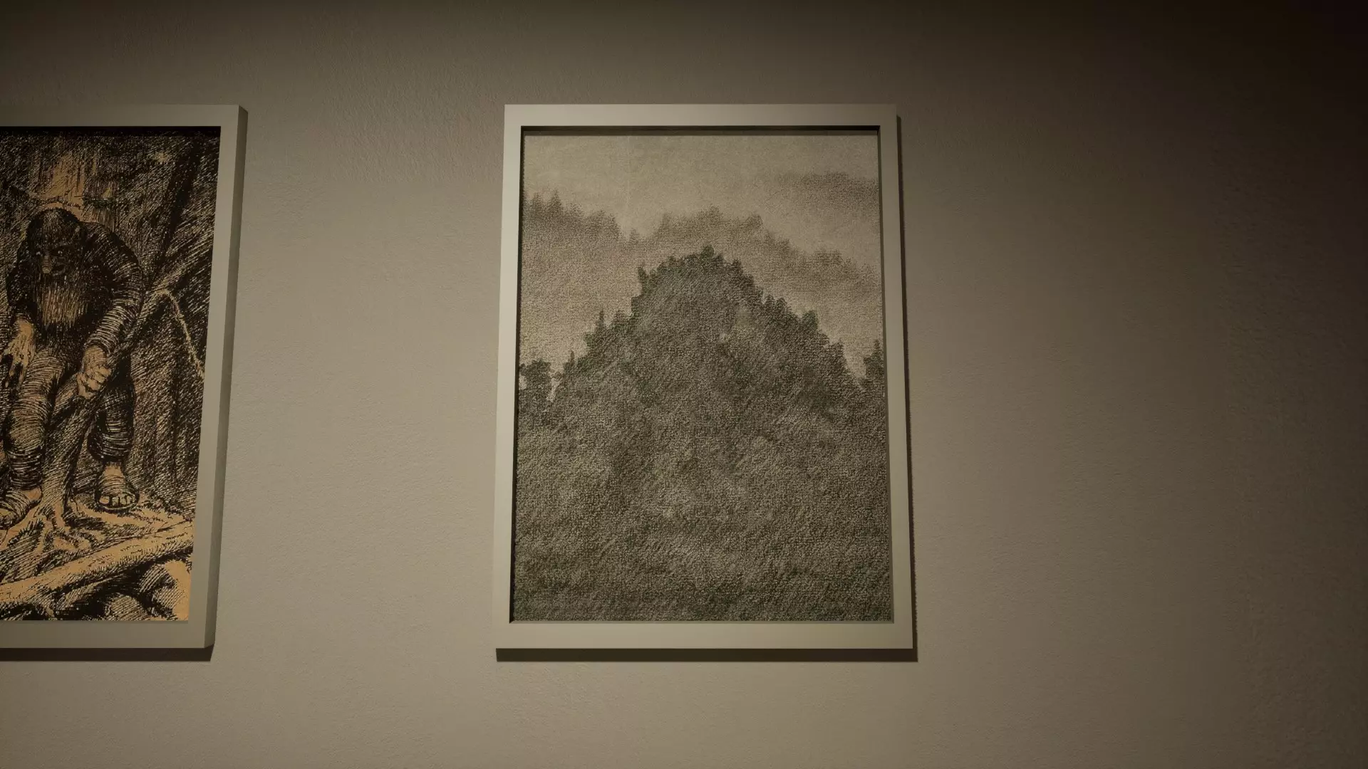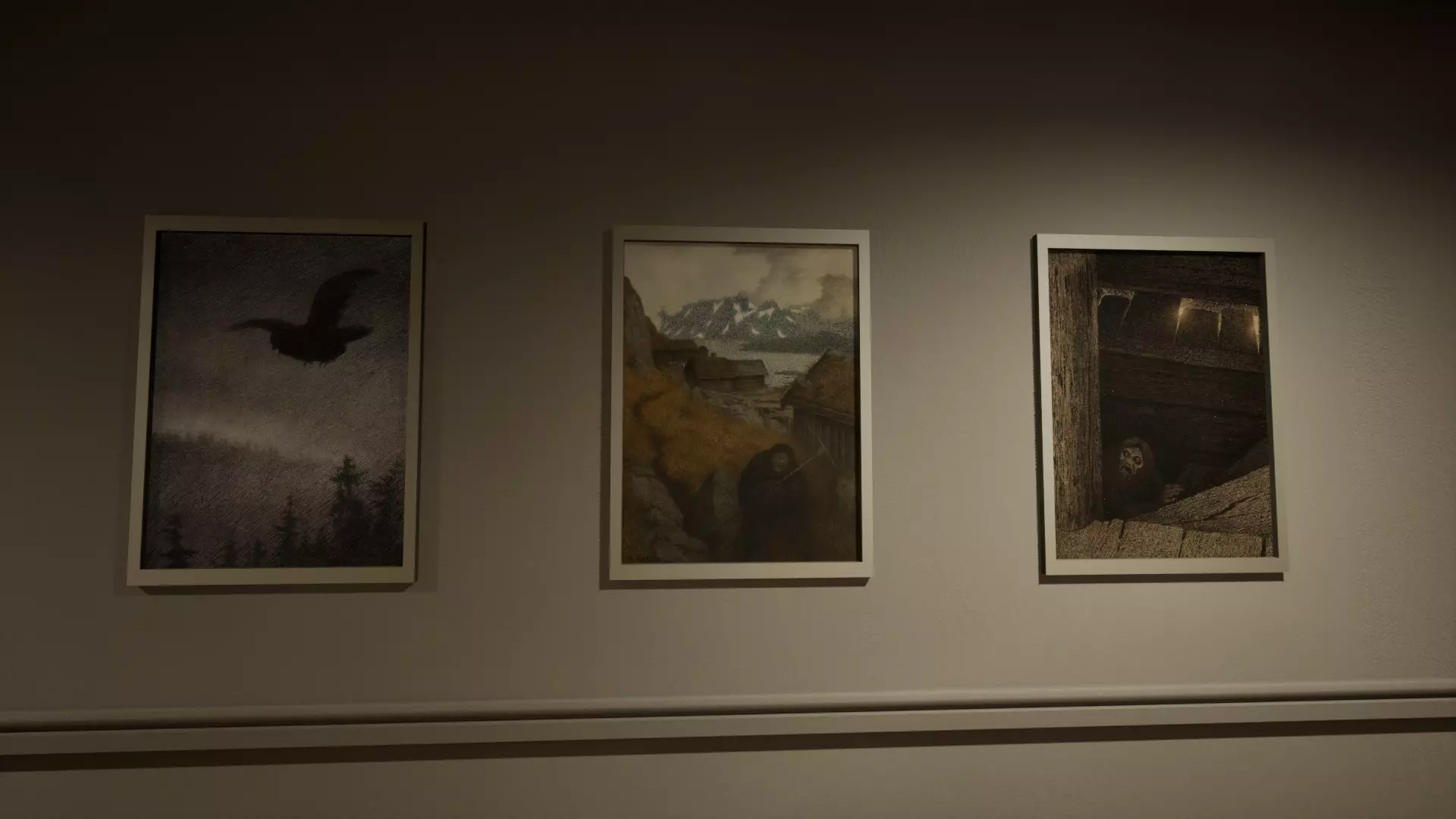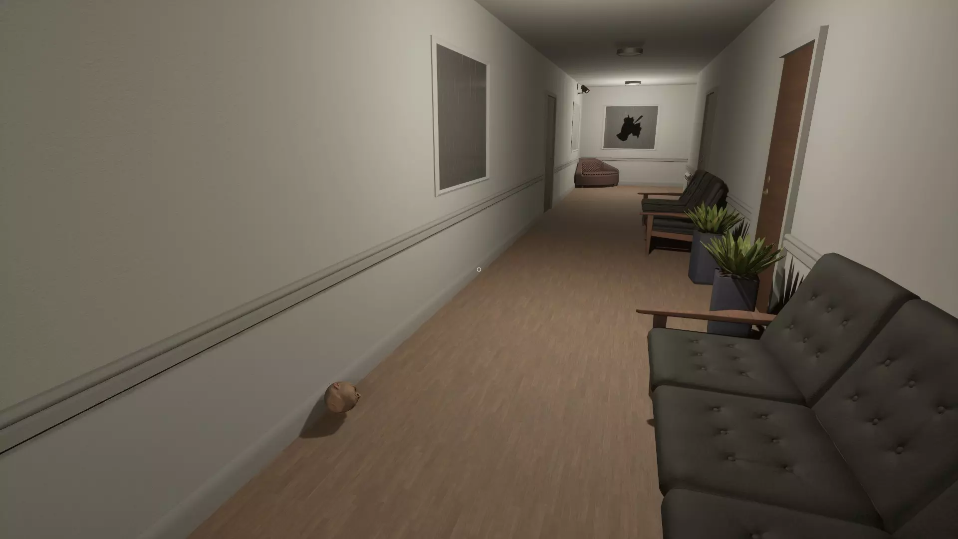 走廊画作互换:左侧走廊的一幅画与右侧走廊的另一幅画进行了互换。