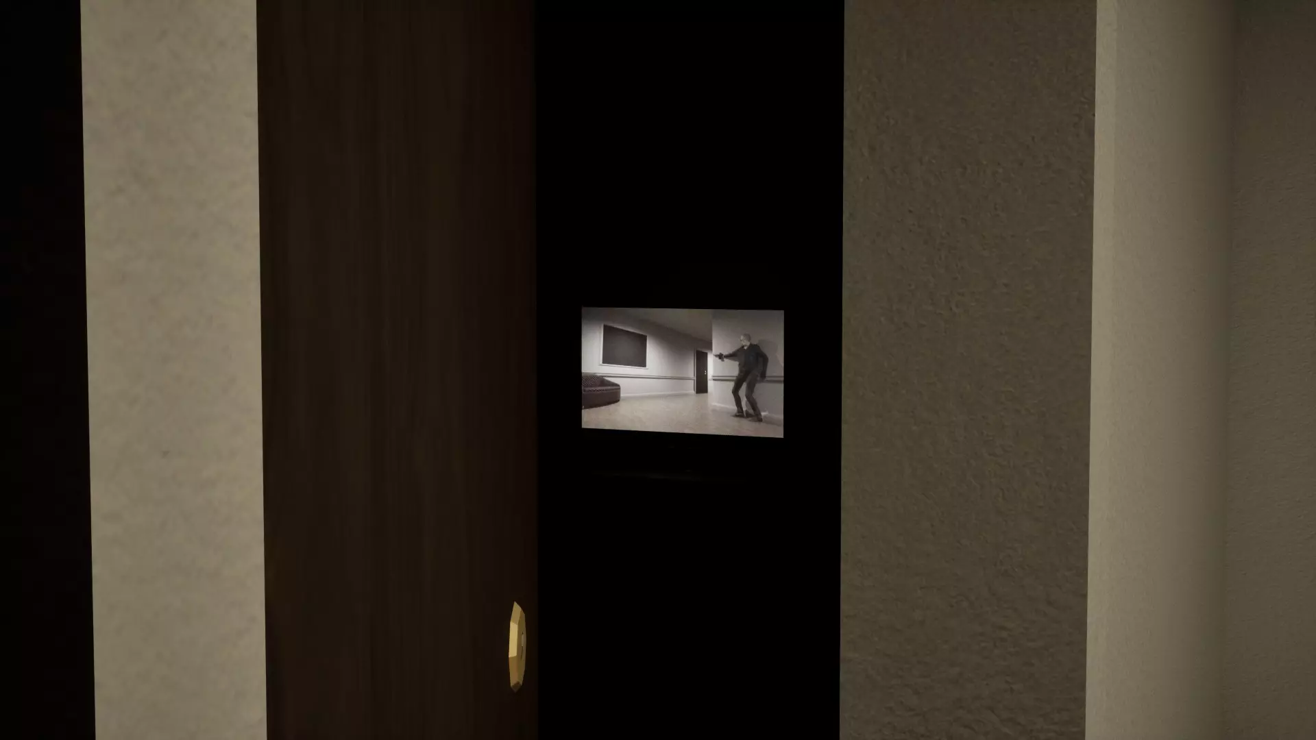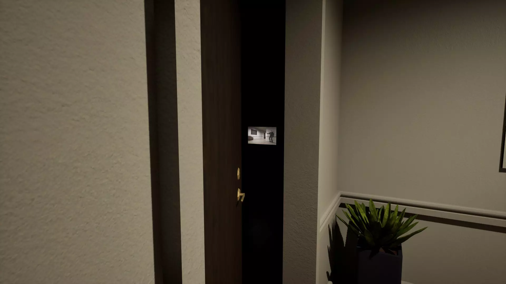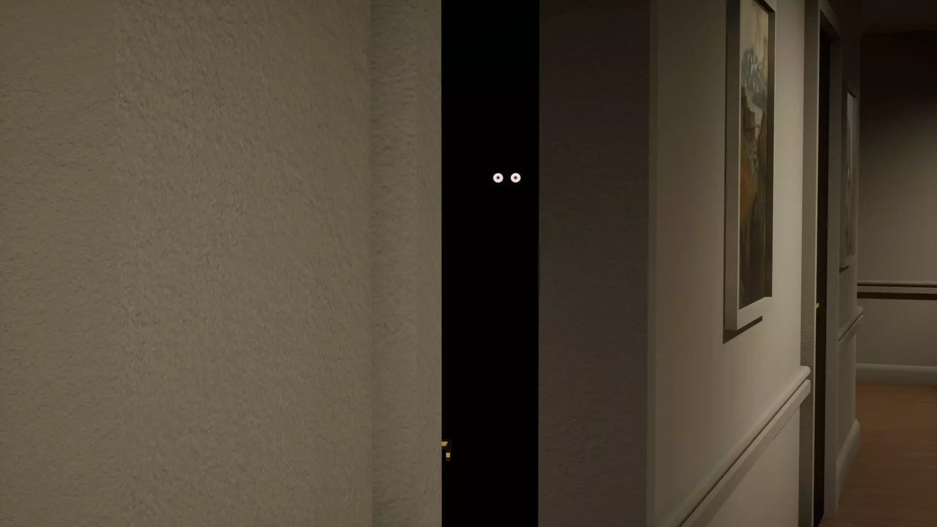 黑暗中的眼睛 左侧走廊,倒数第二扇门,有一双白色的眼睛在注视着你。
