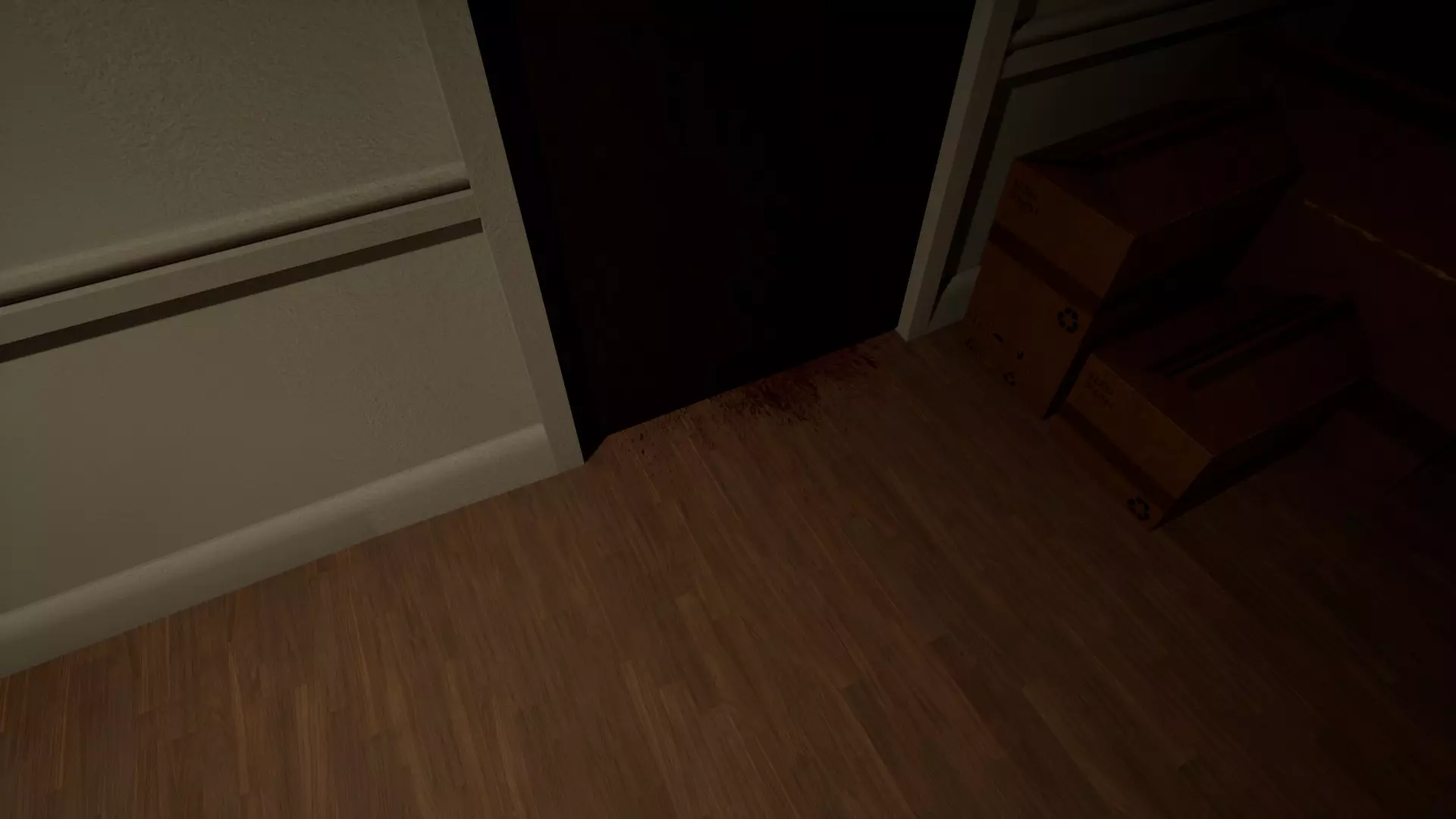 门下方的血迹 右侧走廊尽头的门下方,有血迹。