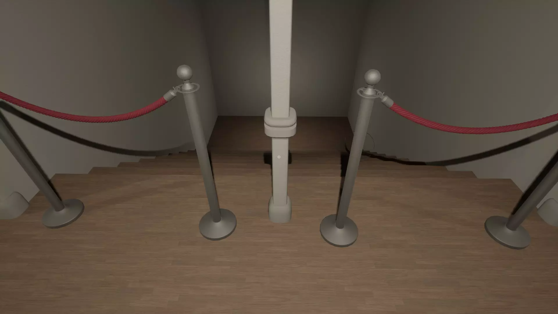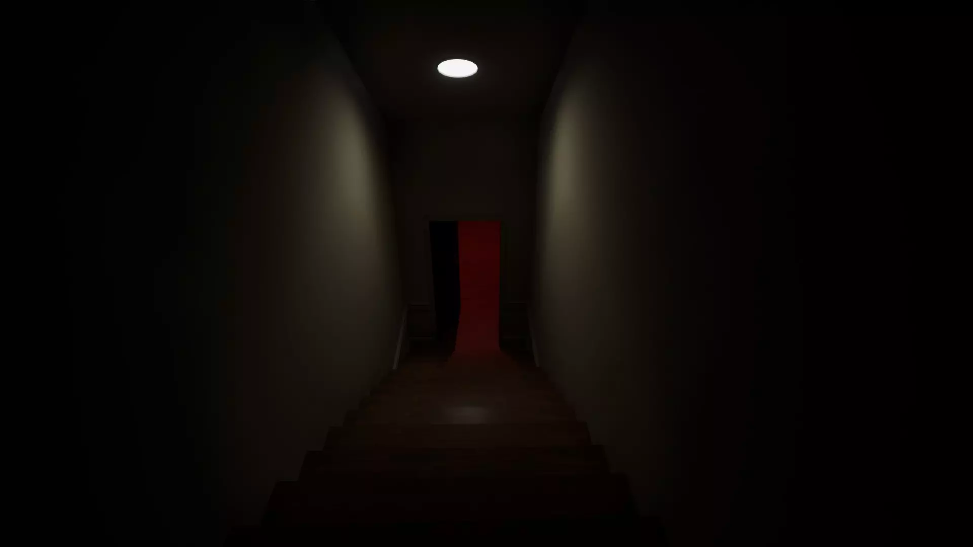 中间走廊 下楼 原本被堵住的下楼楼梯现在畅通了。 你可以下到一个红色房间。 会出现一个透明的家伙……快跑!
