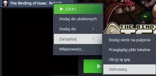 1. 打开库 2. 右键点击【以撒的结合:重生】 3. 鼠标悬停在管理上 4. 点击卸载 5. 点击大型蓝色的卸载按钮