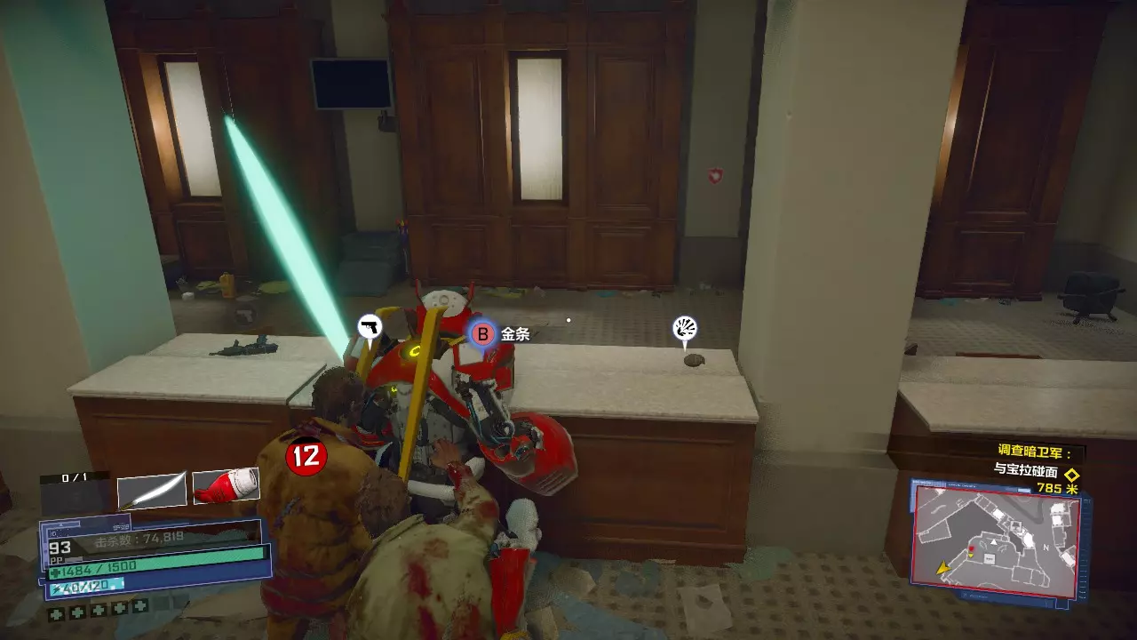 通关一次即可解锁金砖和零式动力甲,金砖在地图上是固定刷新的。 本指南将以商场为例,介绍如何使用游戏内地图刷新机制刷满黄金武器。其余地方还请各位自行探索,其实就算我们不探索其他地方,黄金武器不够用了随时回来刷一波也费不了多长时间。 我们在刷黄金武器的时候,前半段使用零式动力甲,后半段使用地图上的载具,全程不需要武器来战斗。而且流程和主线任务路线十分接近,比较好走。