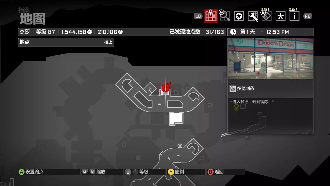 避难所开门后,跑酷前往北门,乘坐电梯到二楼,右手边第一家店铺就是多德制药。