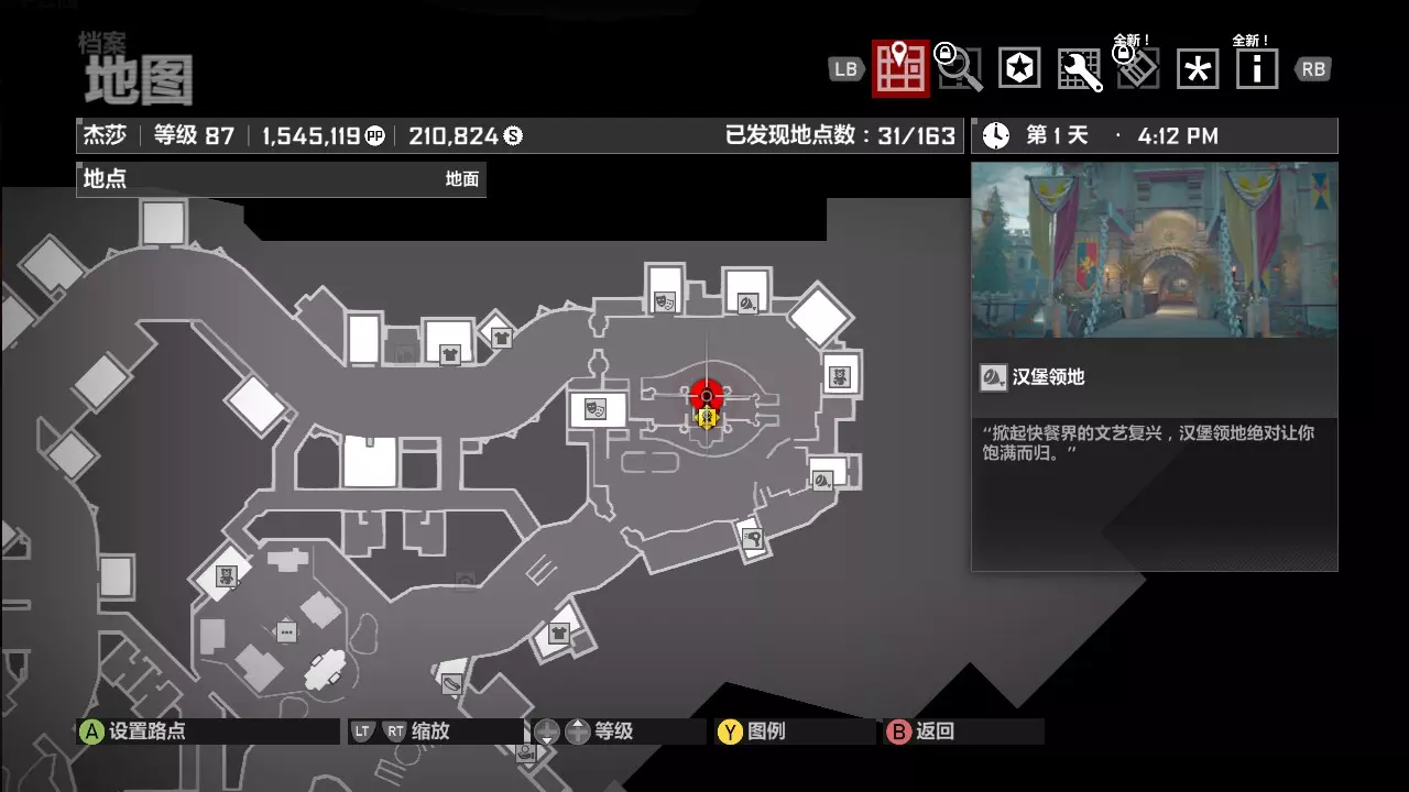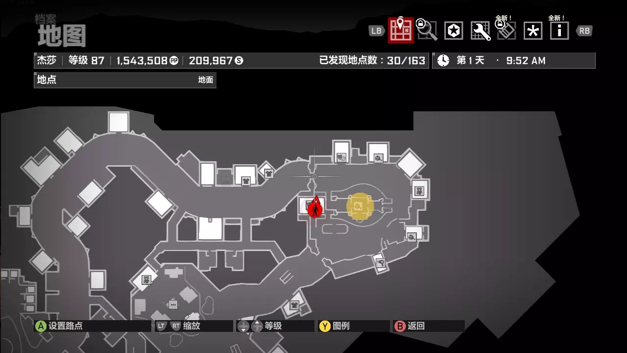 第一关的主要场景是中世纪小镇,这是一个马蹄铁形状的区域。我们先来明确一下,中世纪小镇北边的门称为北门,南边的门称为南门。从地图上看,避难所正好位于两门中间且靠近南门的一侧。 第一天
