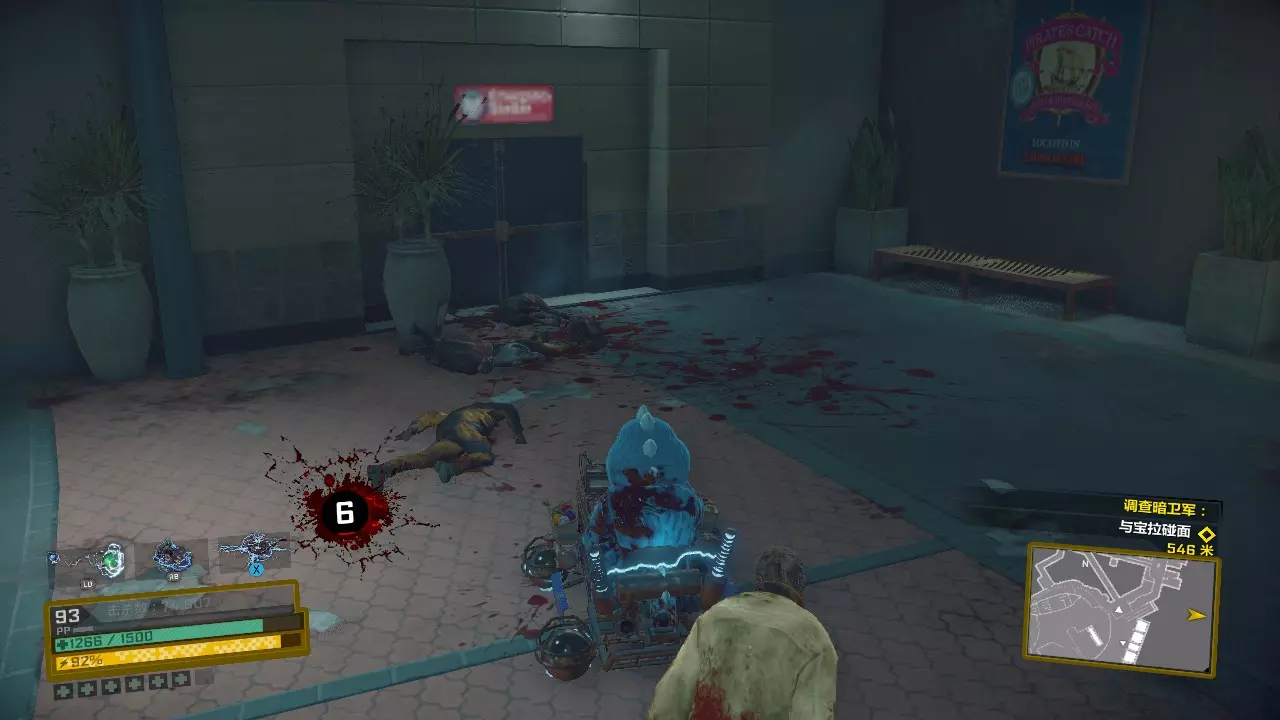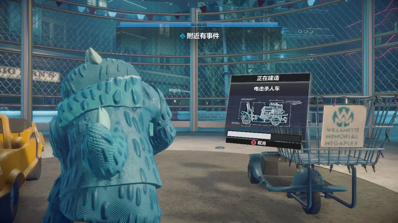 继续按照剧情路线前进,从旅馆旁边的小门绕到赛车跑道区域,前往图纸所在位置组装电击杀人车。一边屠杀僵尸一边推进。