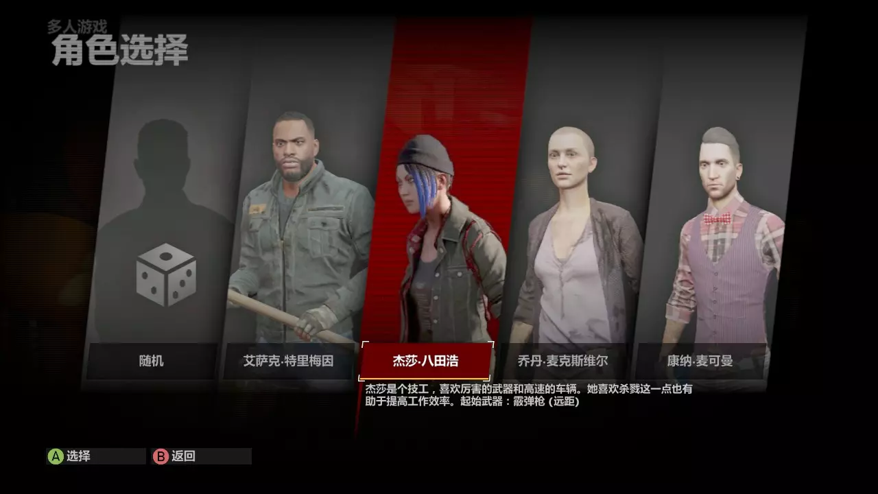 人物推荐杰莎。初始武器霰弹枪,即使在没有技能加成的前提下,依然可以一枪解决一个抢宝丧尸,一般丧尸更是不在话下。我们出了避难所第一个任务就是跑酷捡东西,所以就需要这种杀伤力大、续航可以忽略的武器,反正主力也不是它。或者你也可以选黑人小哥艾萨克,初始武器锤子可以和避难所内水泥锯合成锤锯,但远不如杰莎的霰弹枪划算。线上所有人物的技能是共享的,所以不必担心重复练。 补充说明一下,线上模式和故事模式的等级技能不共享,但试炼获得的技能点、金钱、黄金蓝图和故事模式全部蓝图都是共享的。