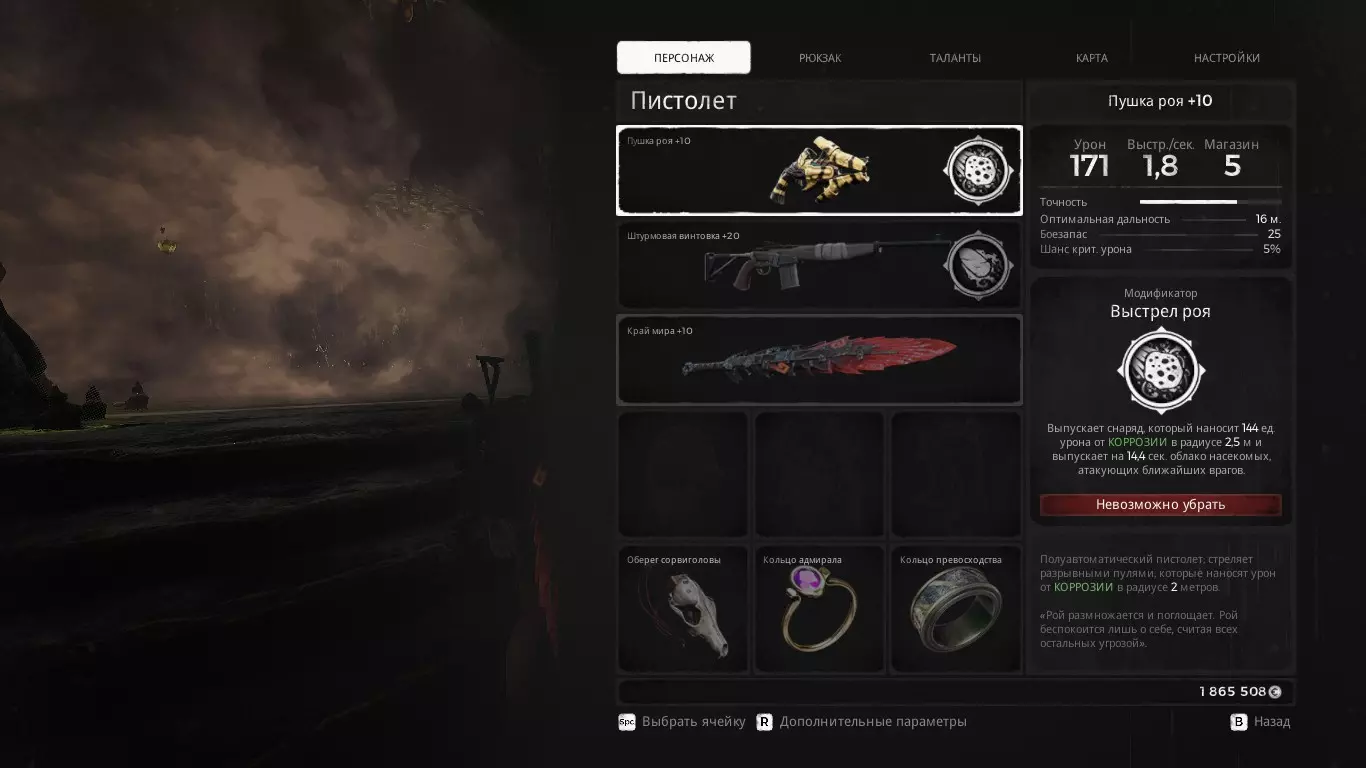 我这套配装用于对付近战型 Boss 或那些能被控制在同一区域内的敌人。核心思路很简单:用手枪的模组对着 Boss 周围射击,然后切换到圆盘发射器释放甲虫。如果你受到了意外伤害,它能为你提供不错的治疗效果。 armor 可以换成迷宫 armor。