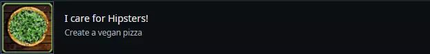 提示 您无需创建100种或500种不同的披萨!只需反复保存一个空披萨并使用相同的名称。不要手动操作,而是使用网上的自动点击器。使用相关工具甚至可以保存自己的操作流程... 制作素食披萨时,自然只使用游戏中标注为素食的配料。 财务 成就 新手入门...