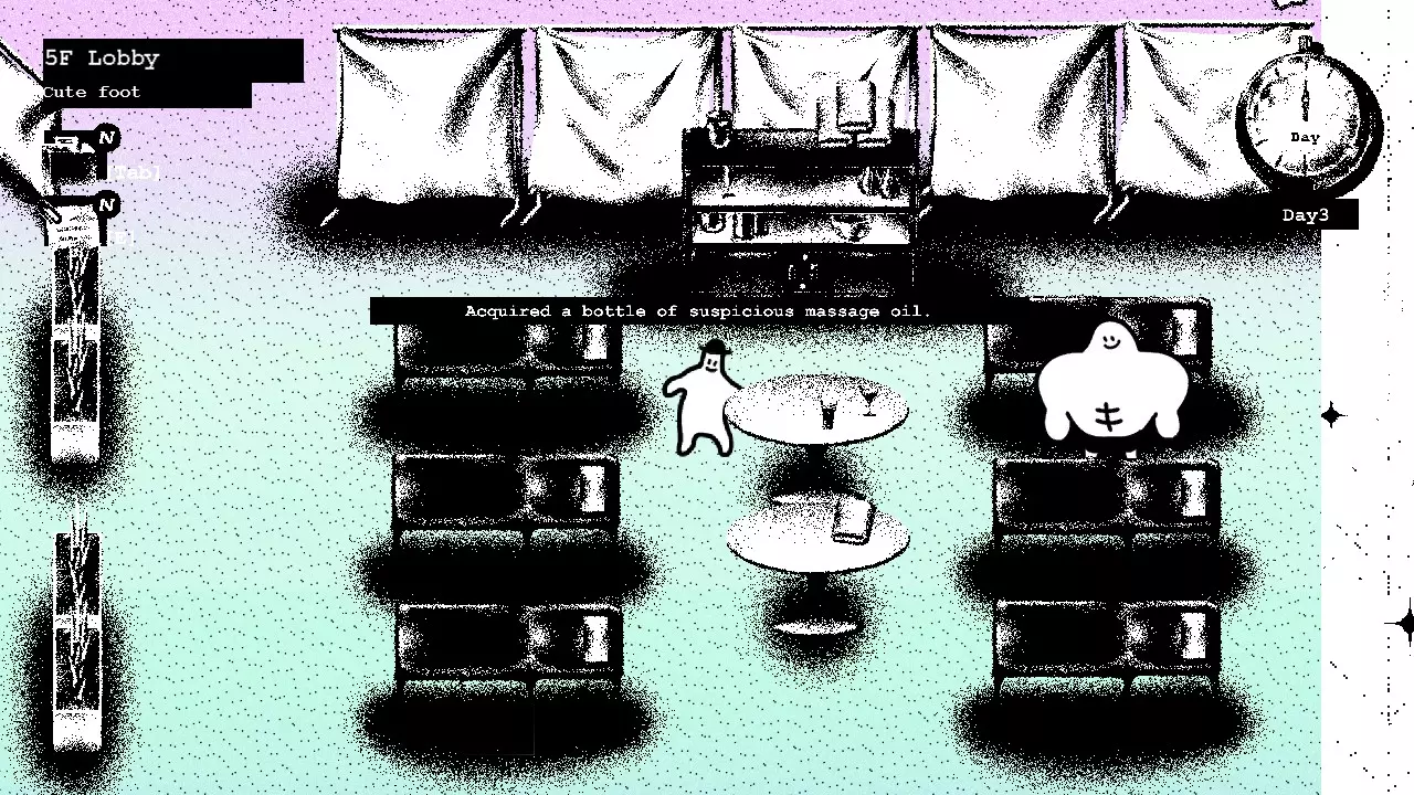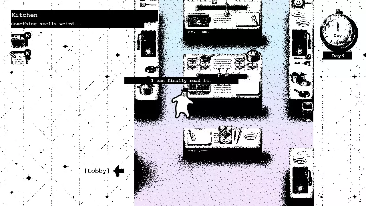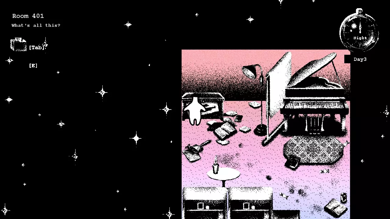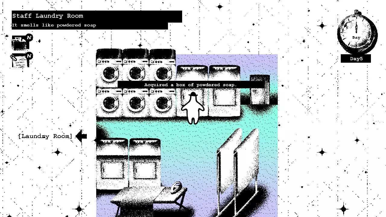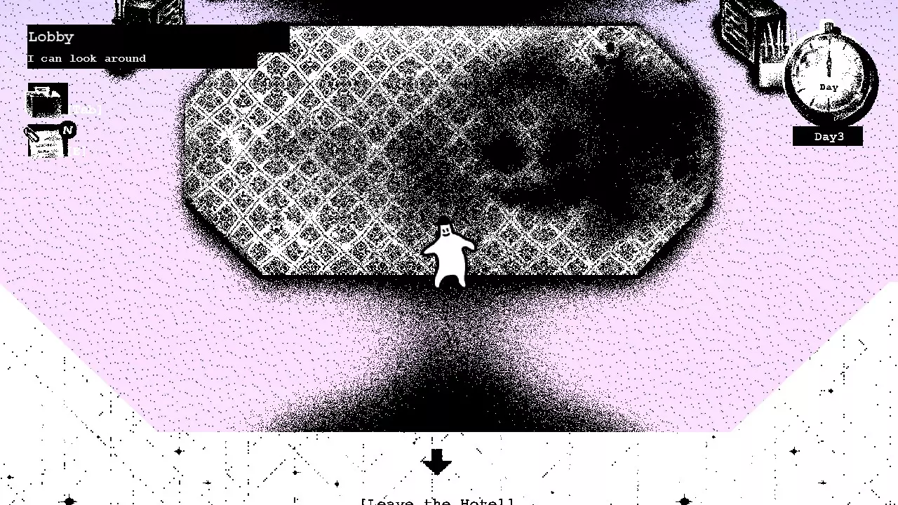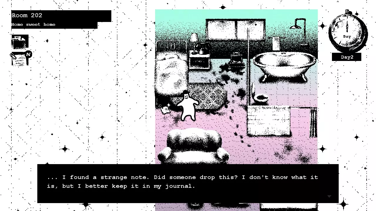 第二天 在你的房间醒来后,去查看行李箱,发现石头不见了。 酒店各处散落着类似这样的笔记。它们不难找到,只要仔细检查每个地方,就能全部收集到。