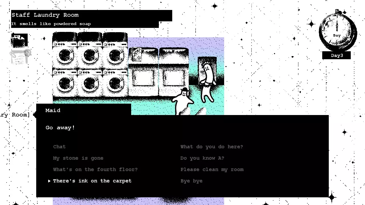 然后前往三楼的洗衣房,告诉女仆关于地毯的事,她就会让开。